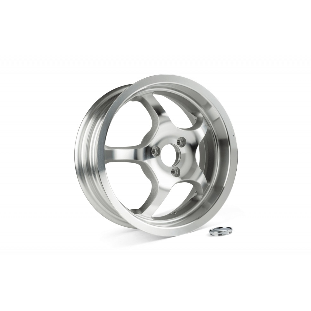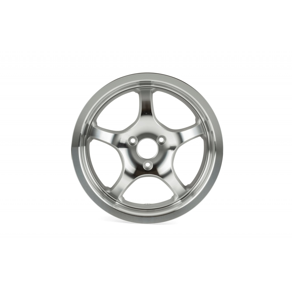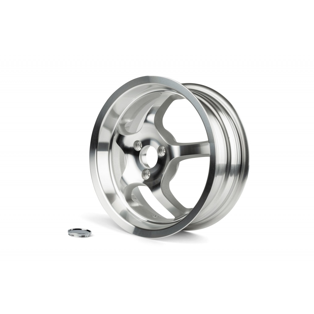 Kiesler’s famous Wide Tire Wheel 5×13″ for MBK Nitro / Aerox. This ultra wide rear wheel with 13″ rim is made of aluminium with brushed rim bed and spokes for the ultimate dragster style look!
