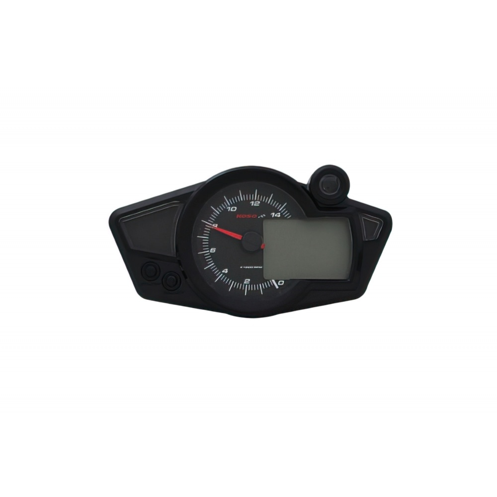 Koso Speedometer/Tachometer digital RX1N-R with black dial, blue lighting and an illuminated pointer (for riding at night), full-featured dashboard instrument for your vehicle.