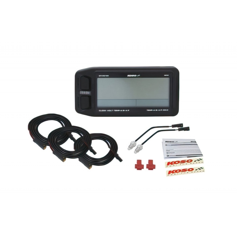 Koso provides a huge catalogue for top quality dashboard instruments for any application. This is the Koso Tahometrs / termometrs EFI. Just like most Koso instruments, the EFI multimeter features several functions so you can keep an eye on what’s going on with your vehicle. This instrument was developed for racing and tuning, with everything you to know while on the track.