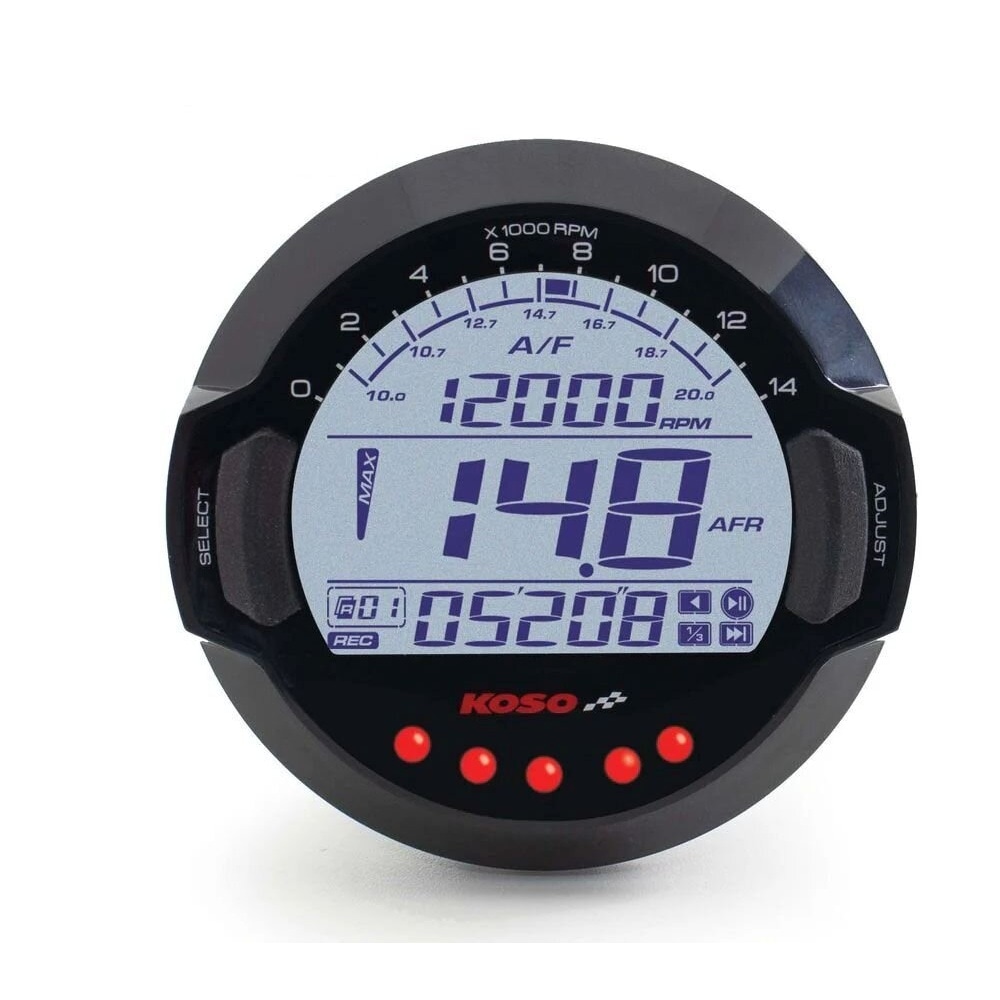 The Koso DL-03A with BOSCH® LSU 4.9 sensor is a multi-function dashboard device. The two main functions are the display of air-fuel ratio and RPM data logger.
