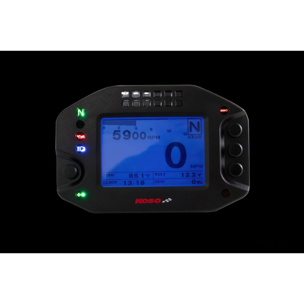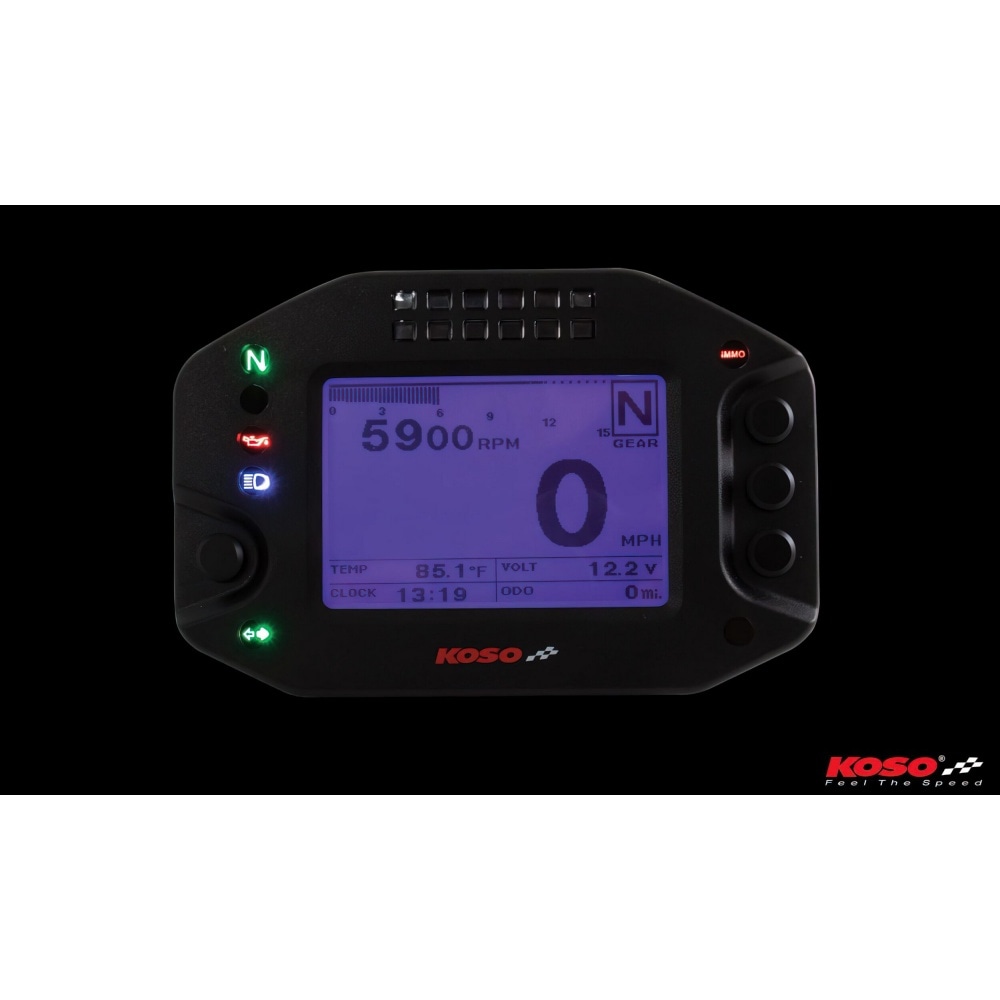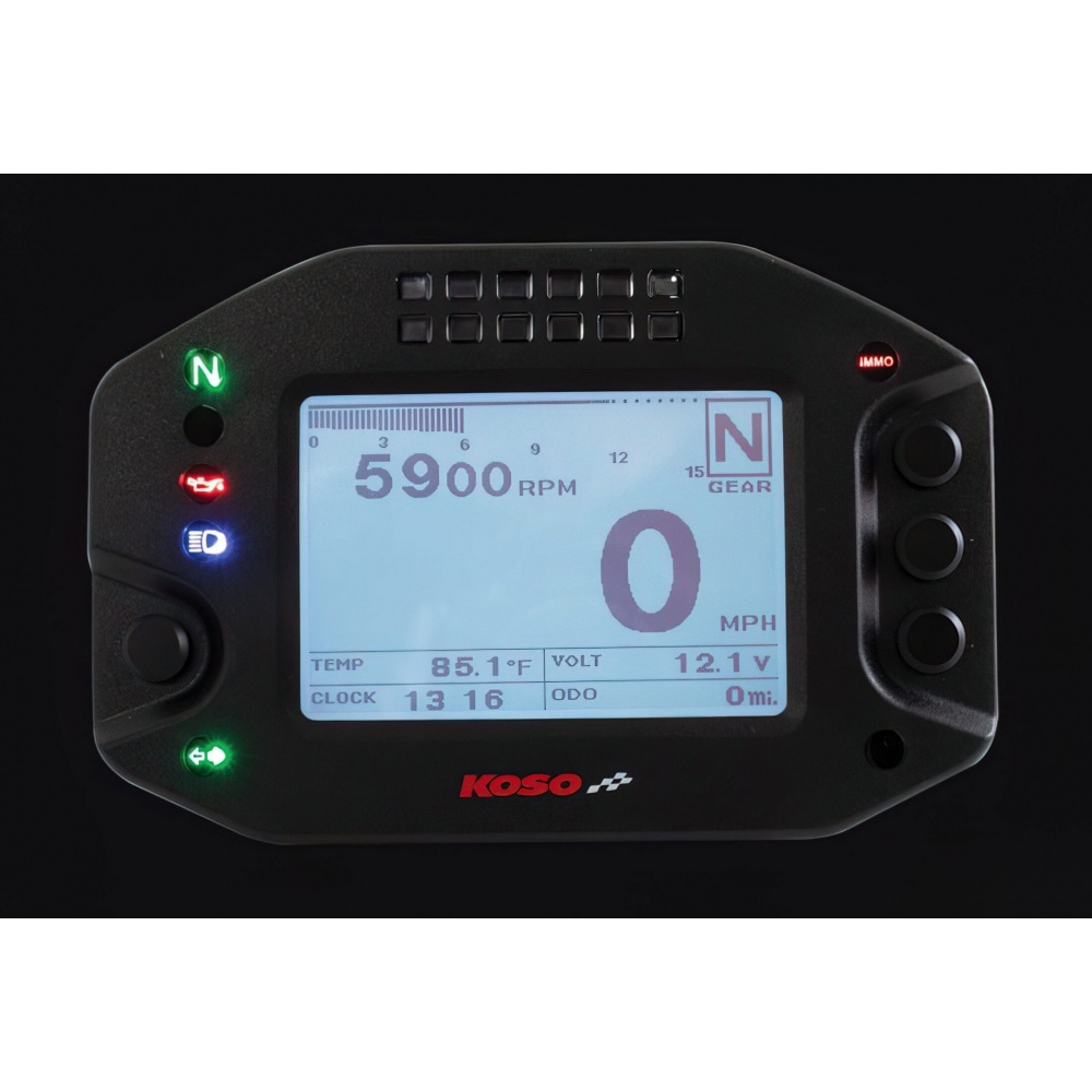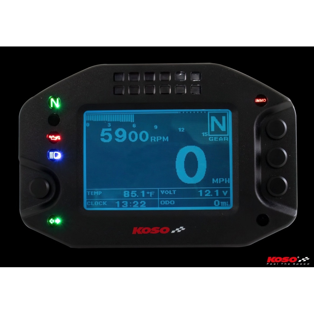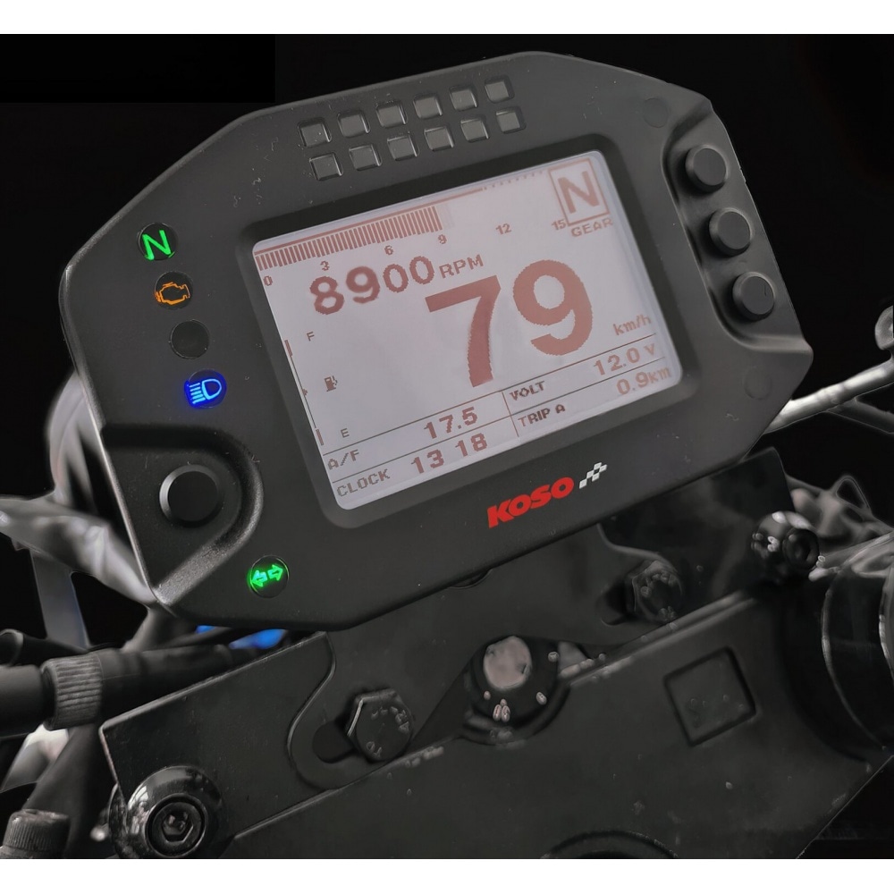 Speedometer multi-function Koso RS2, adjustable multi-function dashboard with many features.The display is clear and easy to read. Due to the rather small size, the speedometer fits on any dashboard.