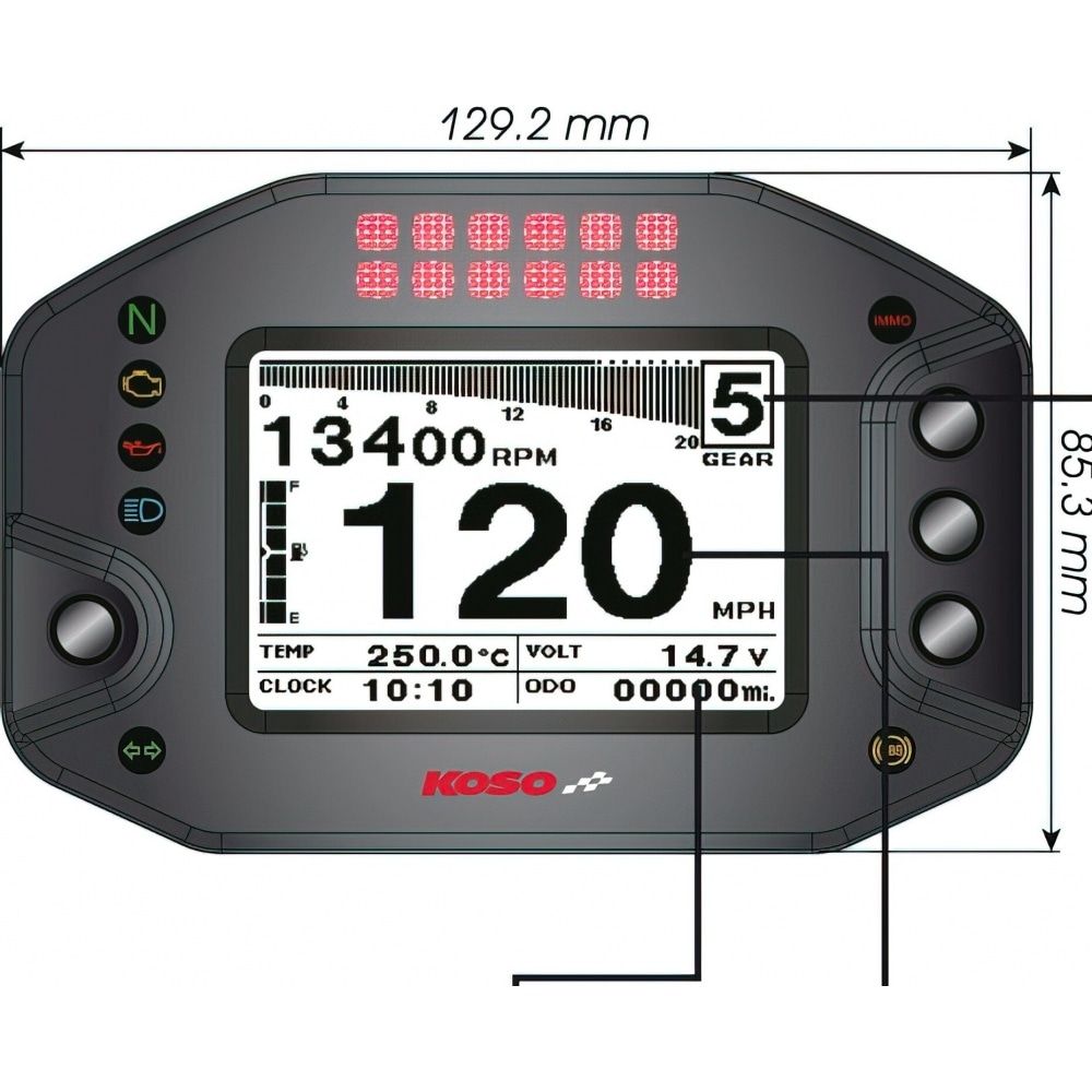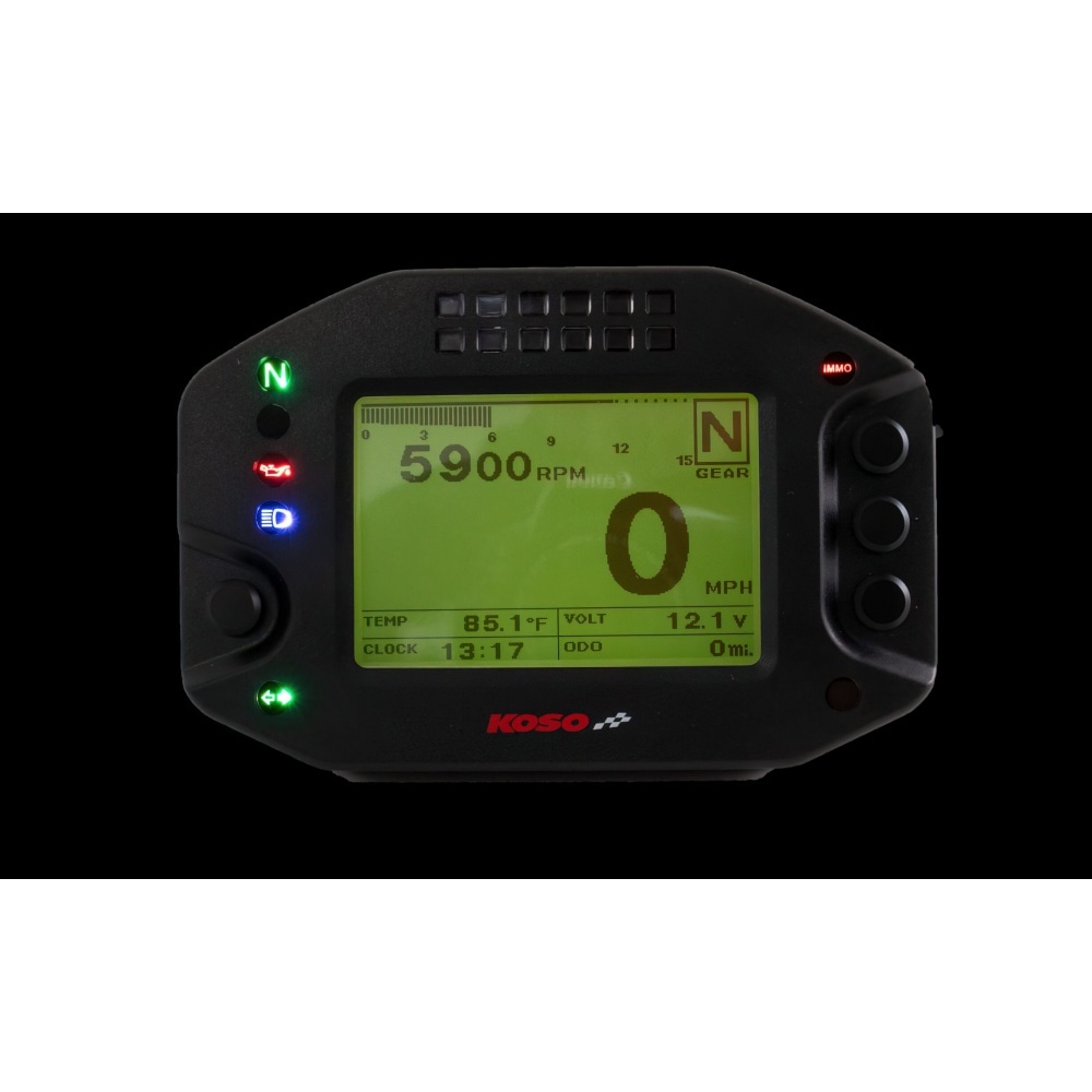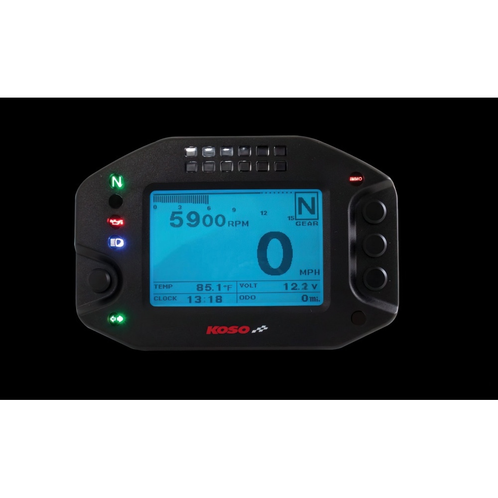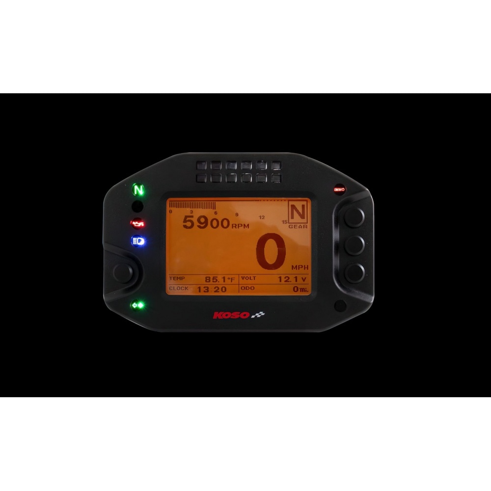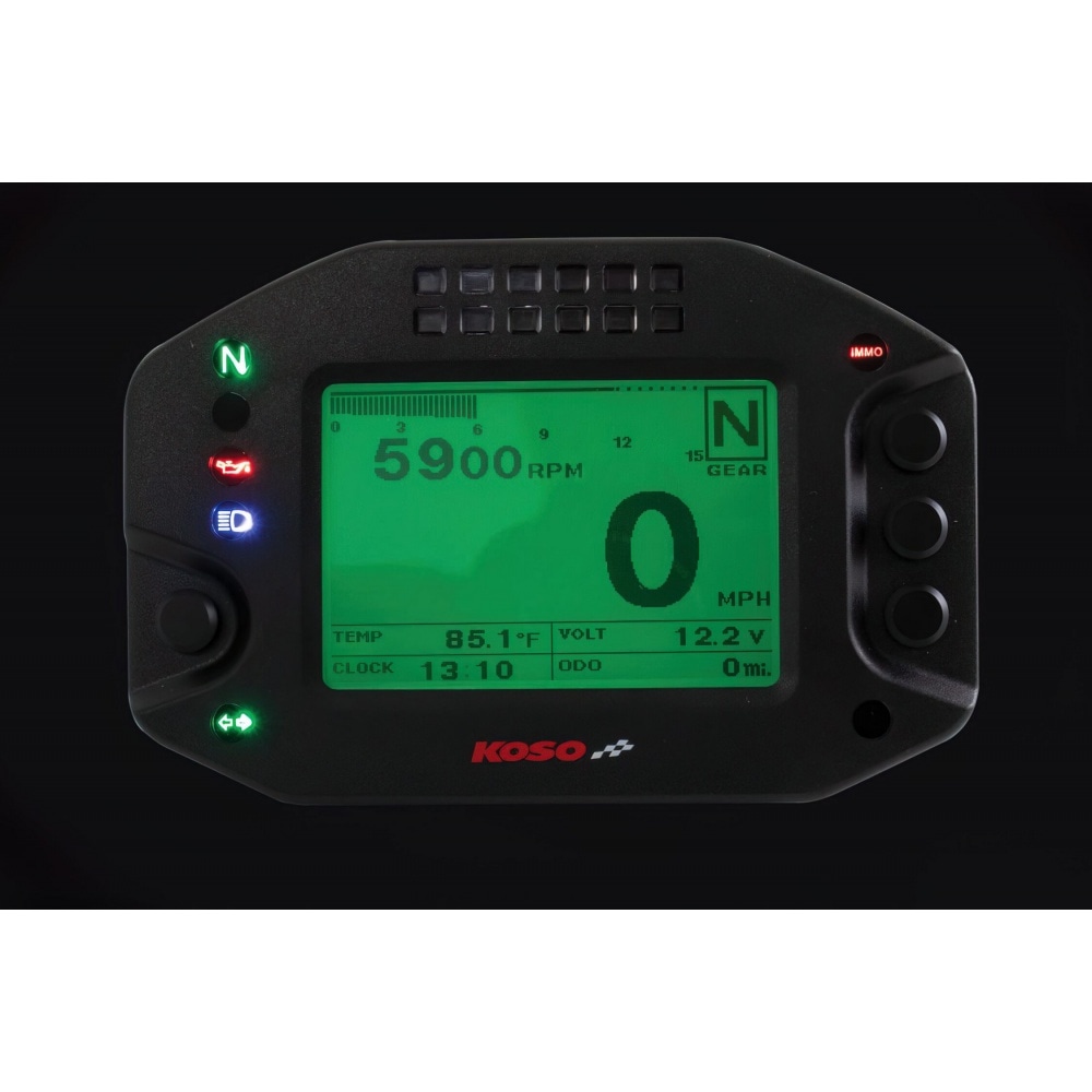 Speedometer multi-function Koso RS2, adjustable multi-function dashboard with many features.The display is clear and easy to read. Due to the rather small size, the speedometer fits on any dashboard.
