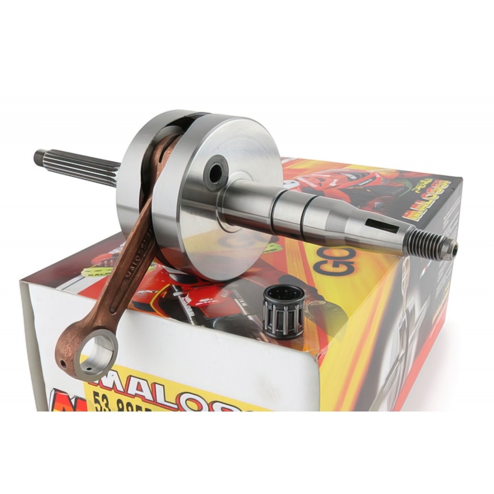 Excellent full-circle crankshaft with high primary compression, suitable for up to 16,000rpm. Top quality materials and stand-out reliability as is typical for Malossi. Ideally suited for racing and even “Hyper Racing” projects.