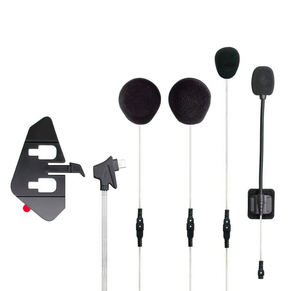 Replacement accessories for the BT Mini intercom systems from Midland. The kit includes the mount (self-adhesive) and the audio kit with cable microphone, boom microphone, speakers and connection cable.