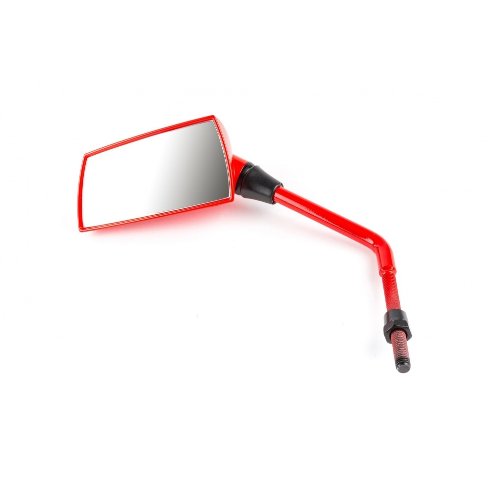 Mirror left matte red Groove D.8mm. The “Groove” mirrors feature a more modern look than the more classic “F1” mirrors. This bright red mirror has an 8mm right-hand thread; please check the thread diameter of the mirror mount before ordering.