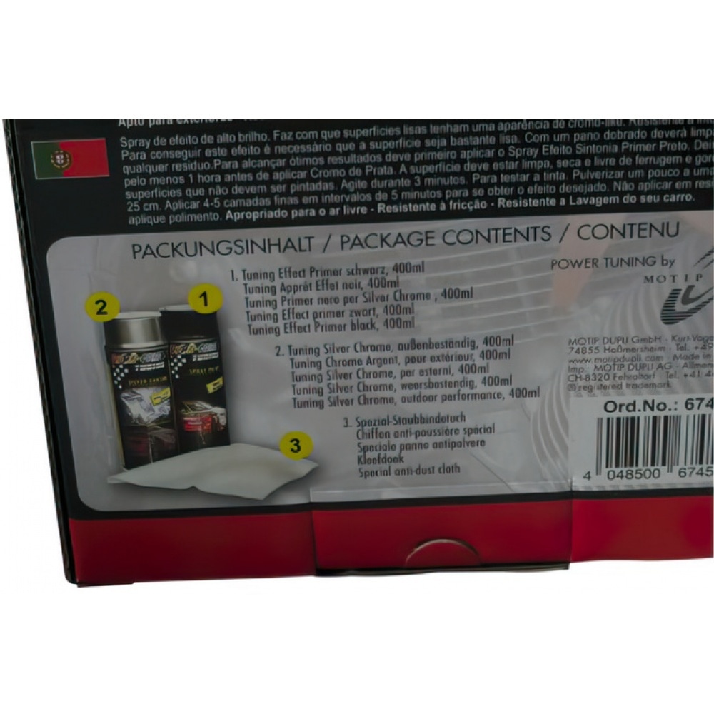 Paint Kit Motip, silver/chrome + primer and cleaning cloth, 400ml