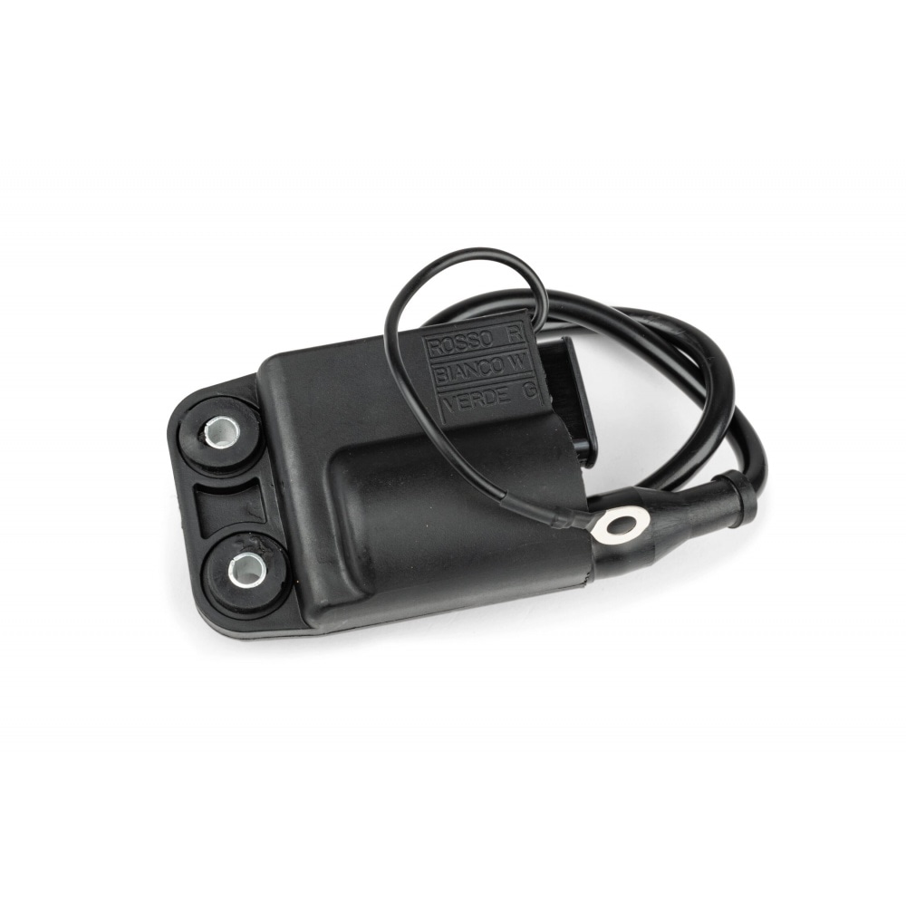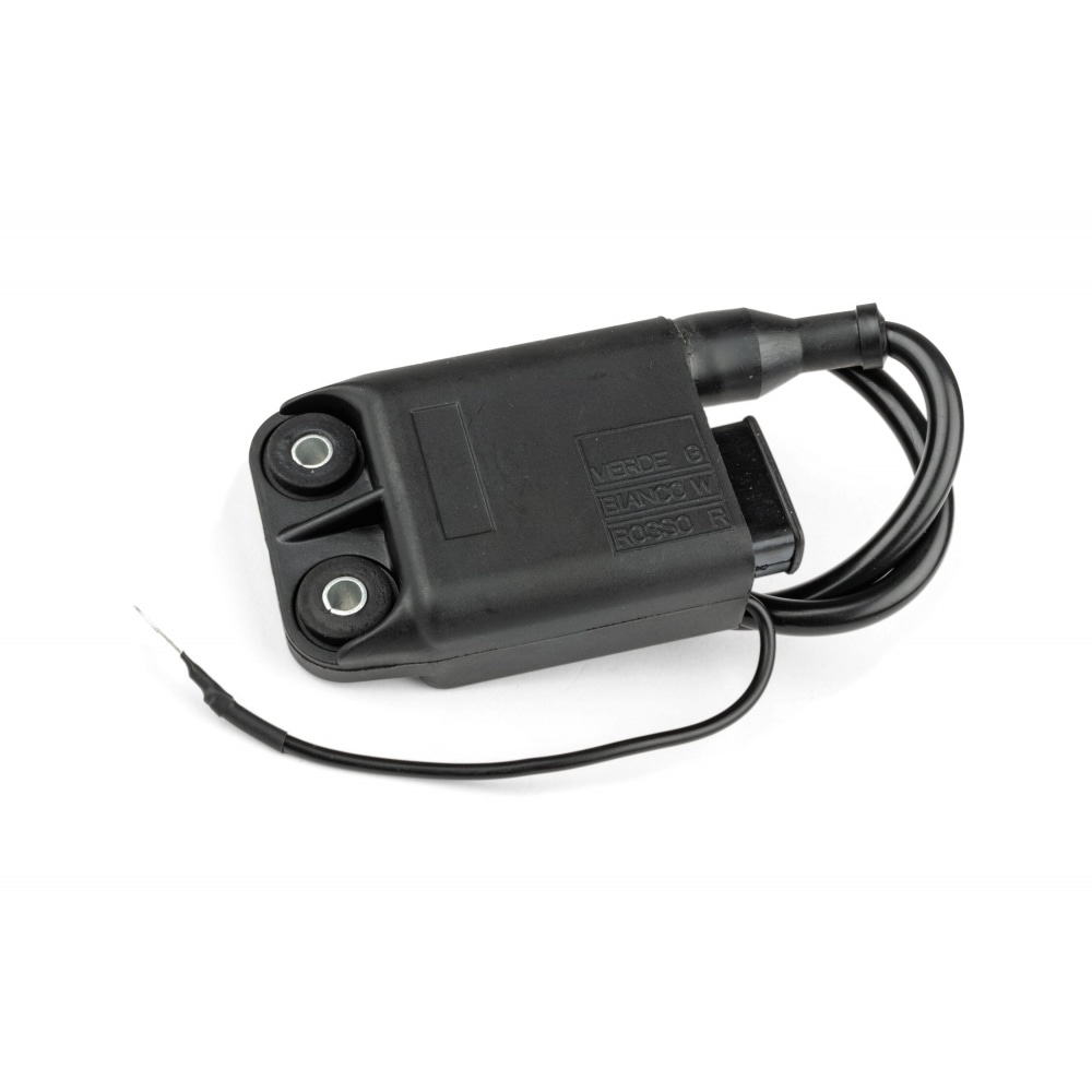 CDI Unit w/ ignition coil Gilera / Piaggio w/o catalytic converter – standard OEM quality CDI to be installed in place of the original part. It has 3 pin connections, a ground wire and a spark plug wire. For Piaggio / Gilera / Aprilia etc. without catalytic converter.