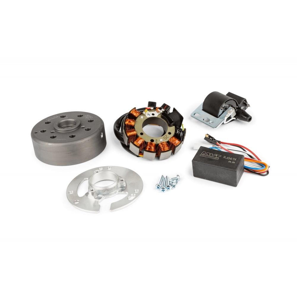 The MVT Millenium External Rotor Ignition Minarelli AM6 (before 2003) is an excellent option if you want to replace your OEM ignition unit, while maintaining a 12 V supply for the lights. If you want to get more power, it is possible to do an analogue-to-digital conversion with this external rotor ignition; in this case, you’ll need an MVT ignition module, sold separately.