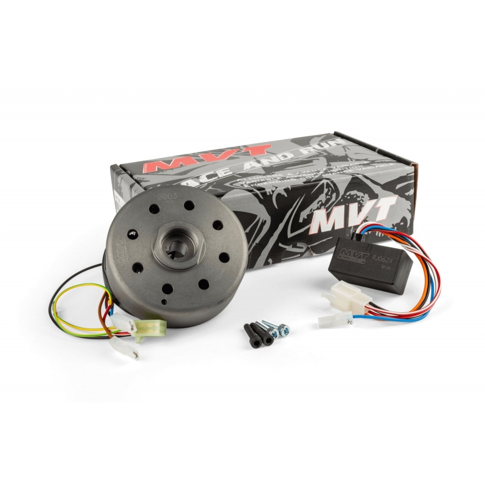 Portāls MVT External Rotor Ignition “Millenium” Peugeot 103 (with breaker) is an excellent alternative if you want to replace your original ignition unit, while maintaining a 12 V supply for the lights. If you want to get more power, it is possible to switch this external rotor ignition from analogue to digital; in this case, you’ll need a MVT Millenium ignition module, sold separately (item no. MVT-DIGIMAX2).