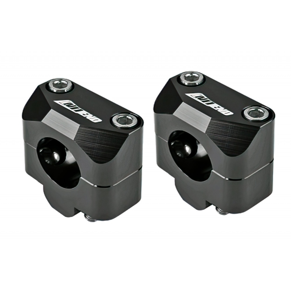 NoEnd Handlebar Brackets d=28.6mm Black, CNC-milled handlebar clamps for mounting handlebars with larger diameter (Fatbar Style). Robust and stylish, with anodized black finish. Simply mount in place of original clamps.