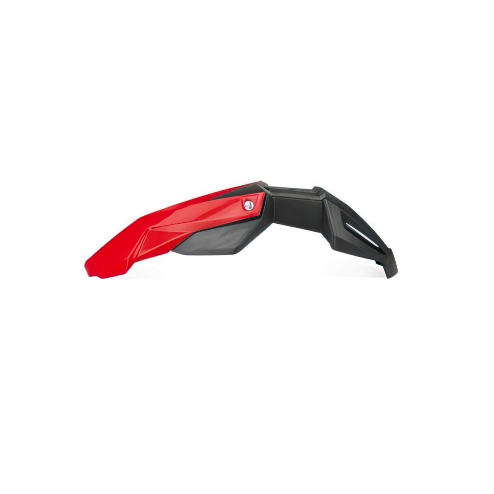 NoEnd Front Mudguard, universal model for 50cc supermoto models (with gearbox), black / red. The mudguard consists of 2 parts – one black, the other red. The sleek angular, composite design will change the entire look of your supermoto – racing look at its best!