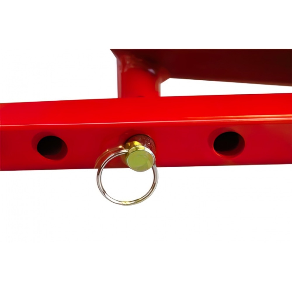 The stand can be adjusted to different front wheel sizes, there are 3 slots for the adjuster pins. In addition, the stand can be fixed to the ground by using the bolts (included) into the 4 corner points. This fixation is especially recommended when transporting your bike on a trailer or in a truck.