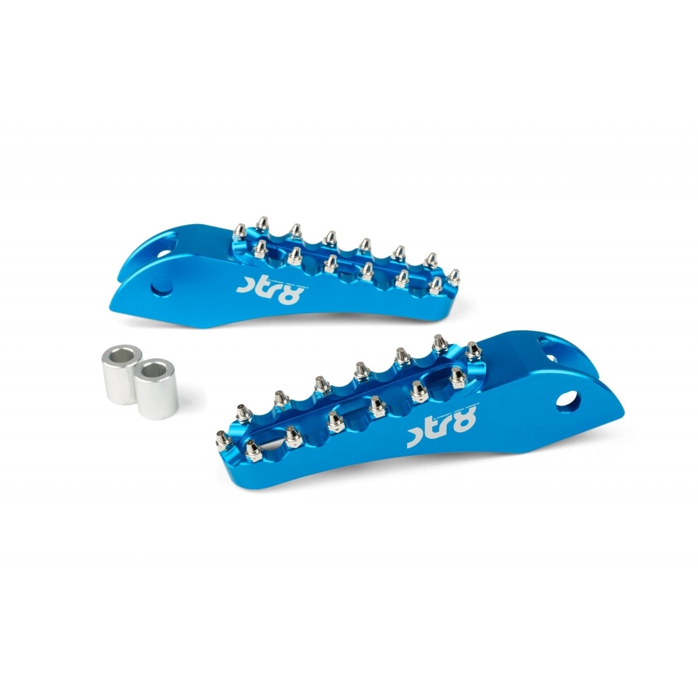 Plug and play fit for Rieju MRT, MRT Pro, MRX, Tango and Spike. The sharp motocross-style teeth provide excellent grip and noticeably better hold than the stock pegs—ideal for sporty riding.