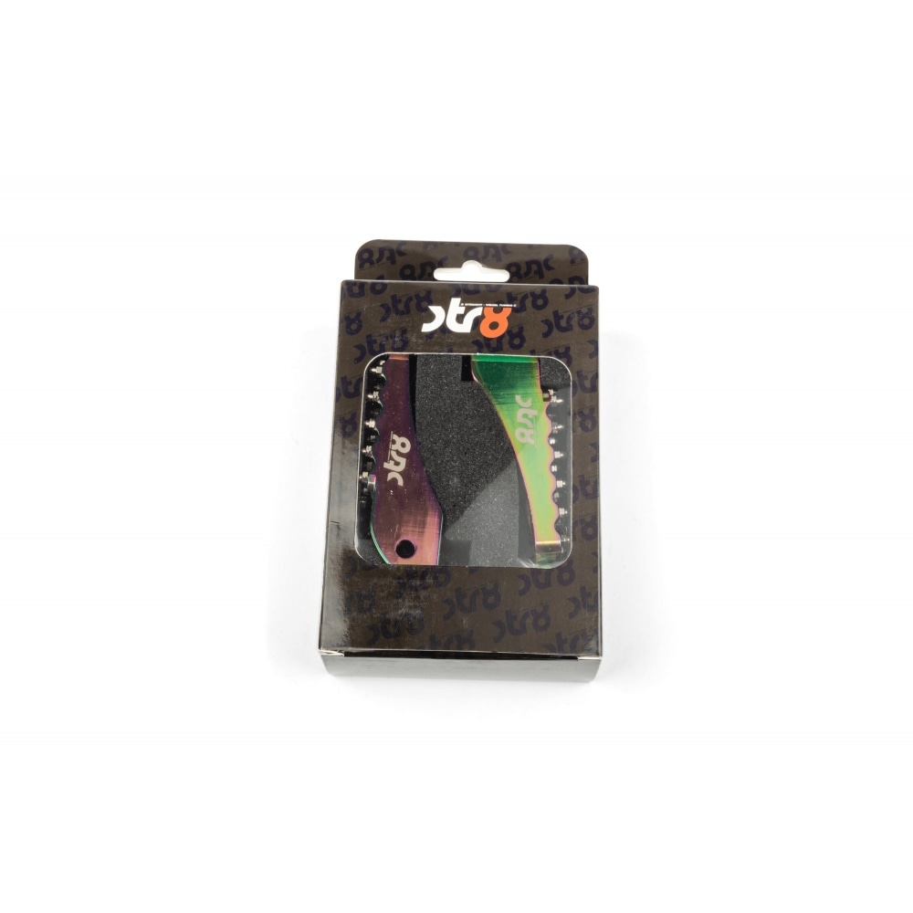 More style and better grip for your 50cc motorbike: the STR8 foot pegs are made from CNC-machined, anodized aluminum. They look sharp and deliver solid support. Cleanly laser-etched STR8 logo and aggressive teeth in motocross style for extra grip.