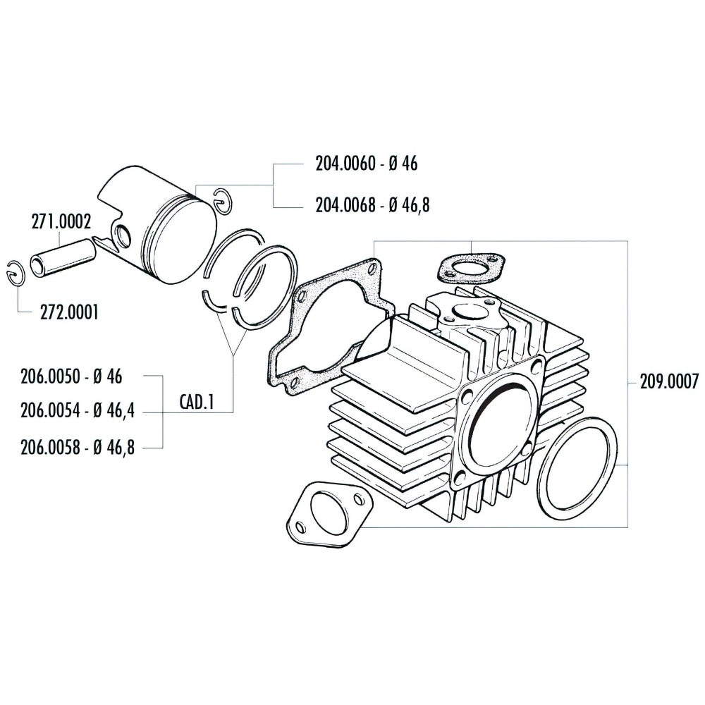 Virzuļa virzuļa Polini Sport 70Cc 46mm Garelli Noi-Matic / Katia 50