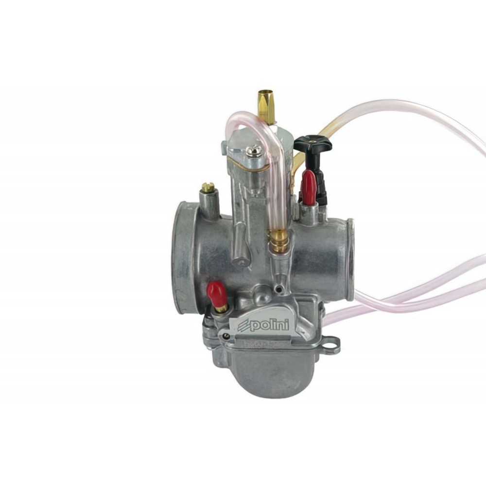 The popular flat-slide reproduction carbs are now also available from Polini. The big carb with its flat, chrome-coated slide offers maximum performance at all revs. Ideal for big-bore engines with 80cc and more. Each carb is checked individually to achieve more balanced adjustments.