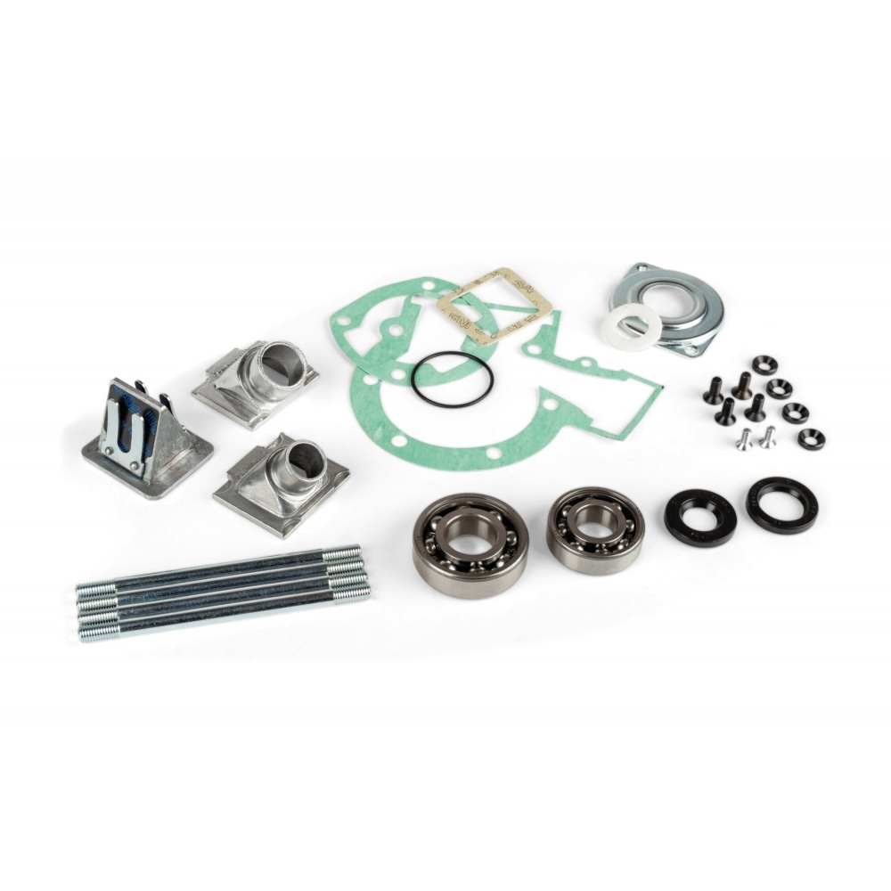 Polini Crankcase Complete Kit Peugeot 103 SP / MV for mopeds including bearings, gaskets and screws. It includes the following parts: