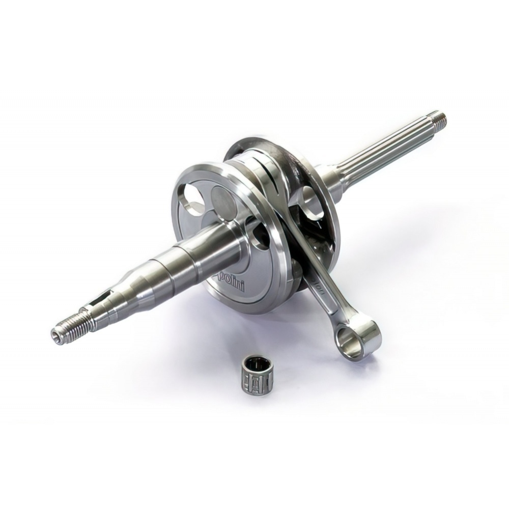 Excellent value for money crankshaft by tuning expert Polini: Polini Crankshaft For Race Yamaha Aerox / MBK Nitro (Minarelli horizontal LC and AC, with 10mm piston pin). The connecting rod is reinforced so the crankshaft can also be used for slightly tuned 50cc engines. Though recommended for mid-race set-ups, it can also be combined with a racing cylinder and set-up.