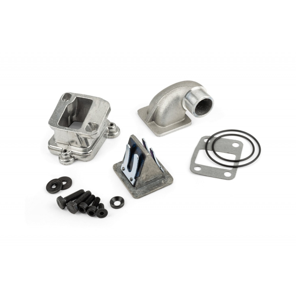 Includes a Polini “Big Valve” reed valve with 4 reed petals, a 17.5/21mm manifold and a special aluminium adapter.