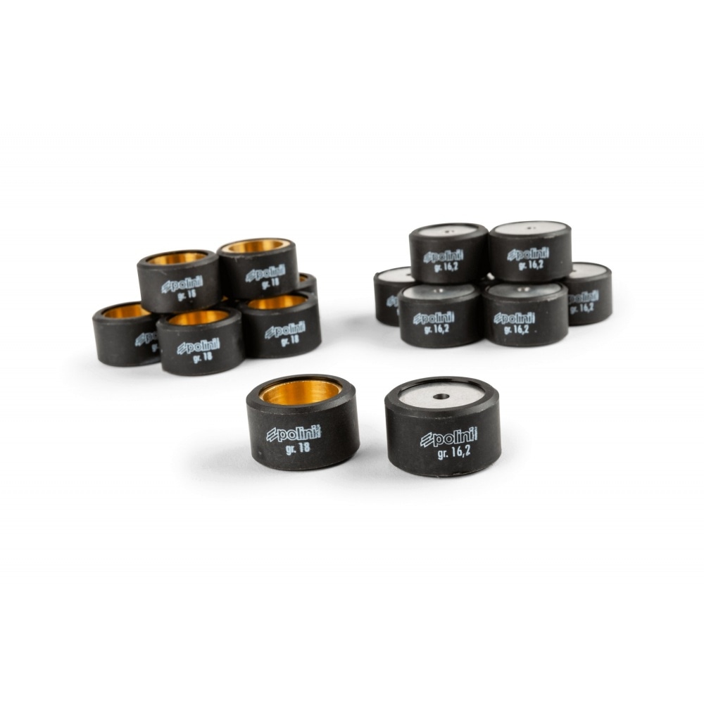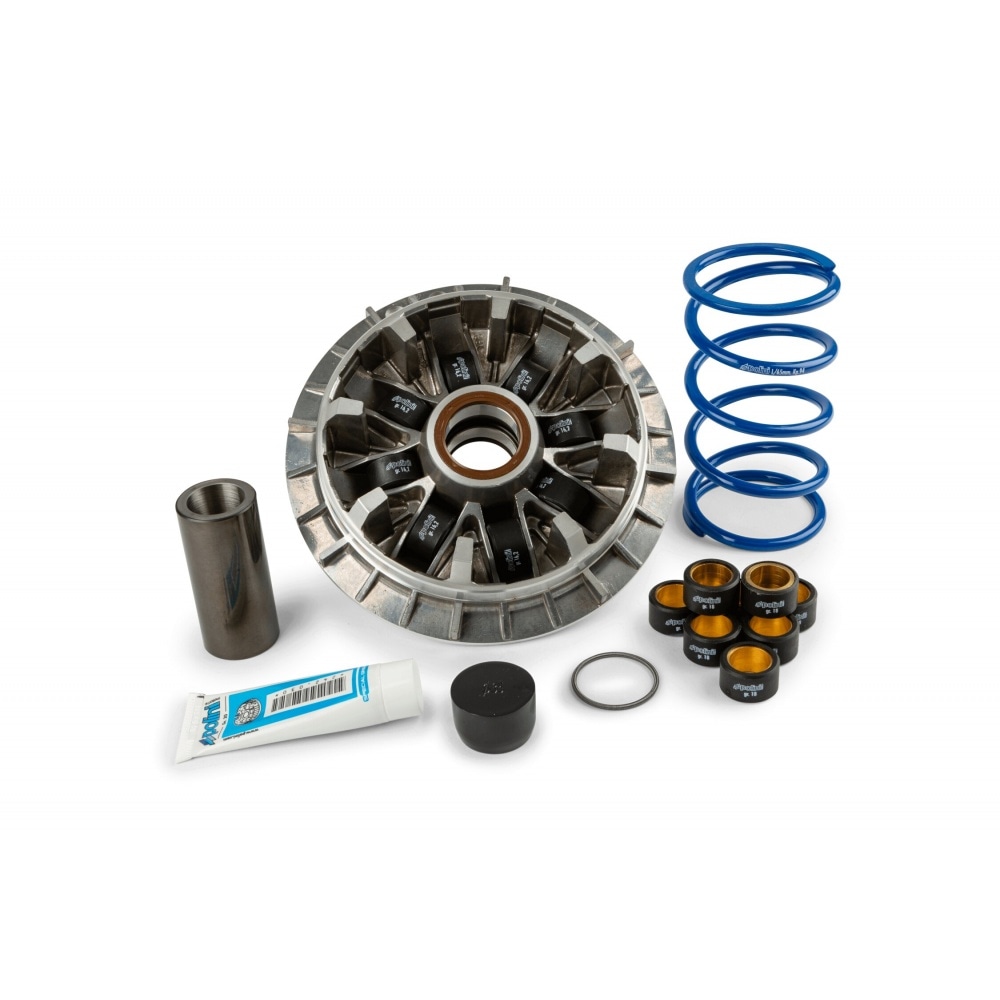 The CVT comes with a reinforced torque spring and two matching sets of roller weights (16g + 18g) – 16g rollers recommended for sporty riding, 18g for touring.