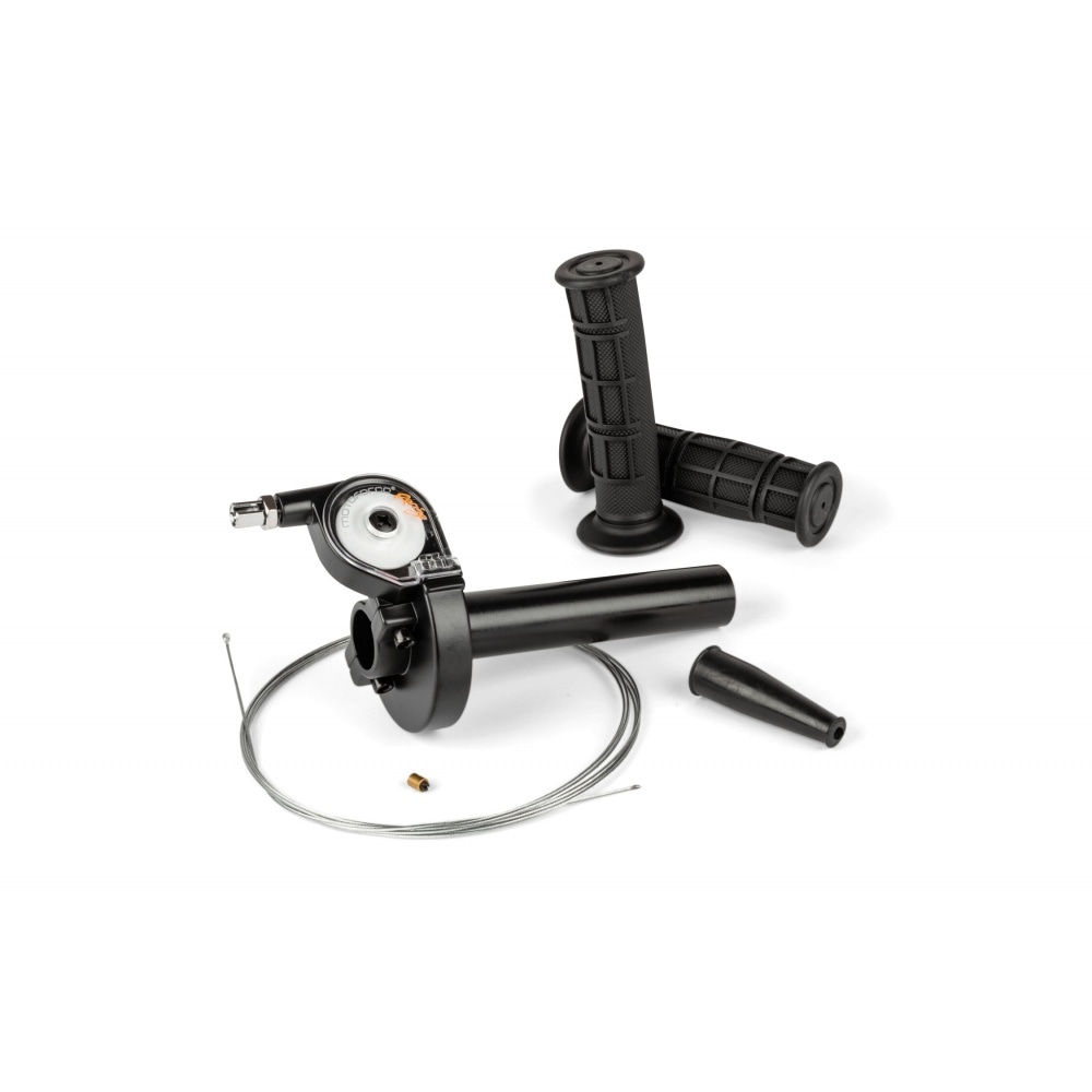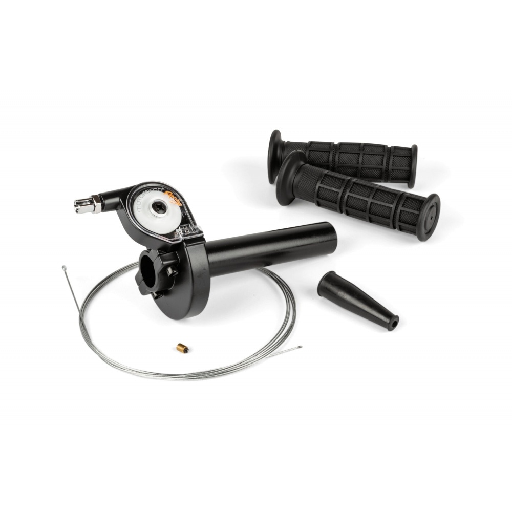 Droseles rokturis ir saderīgs ar visiem 22 mm (standarta diametra) stūres riteņiem. Komplektā ir iekļauti divi melni motokrosa gumijas rokturi.