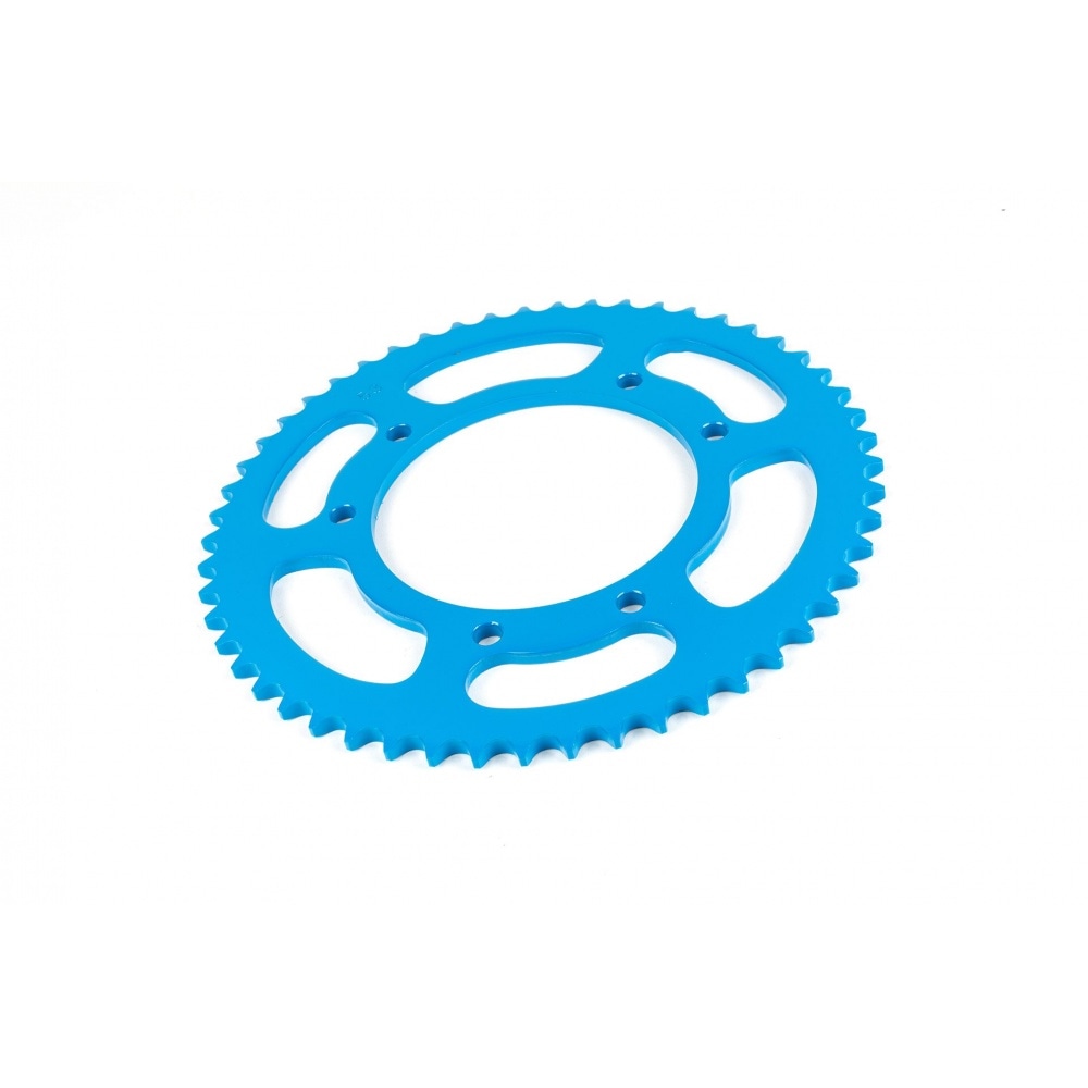 Replace the sprockets on your moped and add some customizing while you’re at it: Rear Sprocket 53 teeth – 420 blue Derbi Senda / Rieju MRT. The sprockets are painted with a very wear-resistant paint, they’re fully functioning, top quality sprockets. Eye-catching replacement for original gear, or for changing the gear ratio of the transmission.