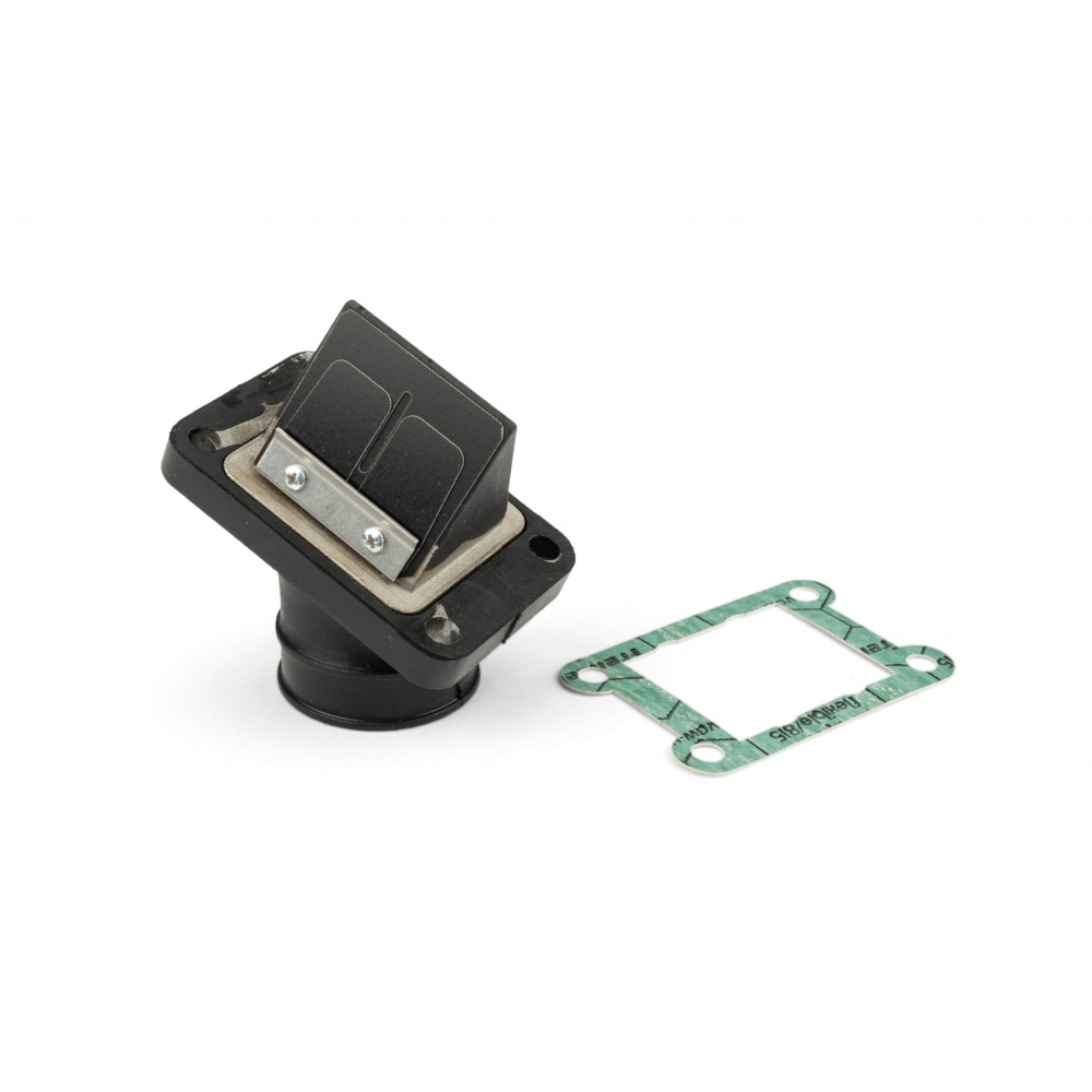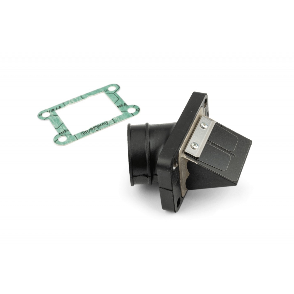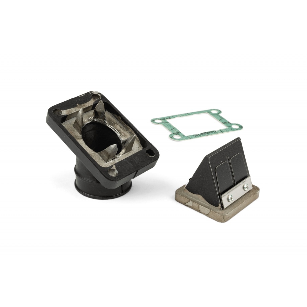 The reed valve is supplied with a stuffer and intake manifold and is optimized for use with a 24 mm carburettor. Tests on the test bench and on the racetrack have shown that performance increases at higher revs, acceleration is improved and a higher top speed can be achieved. All in all a great combo for racing use.