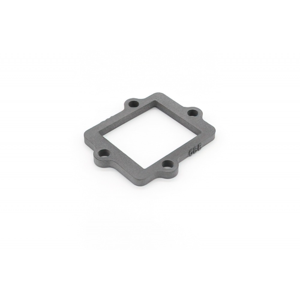 Reed Valve Spacer 5mm CBE Minarelli horizontal (Yamaha Aerox and many others) by French tuning expert C. Bouchet Engineering (CBE). The spacer is placed underneath the reed valve to add more volume to the intake tract. The spacer was made using a high-end SLS (Selective Laser Sintering) 3D print manufacturing technique, with a laser sintering fine polymer powder particles to create a very resistant part. The spacer is resistant to hydrocarbons (fuel etc.) and high temperatures and has excellent sealing properties.