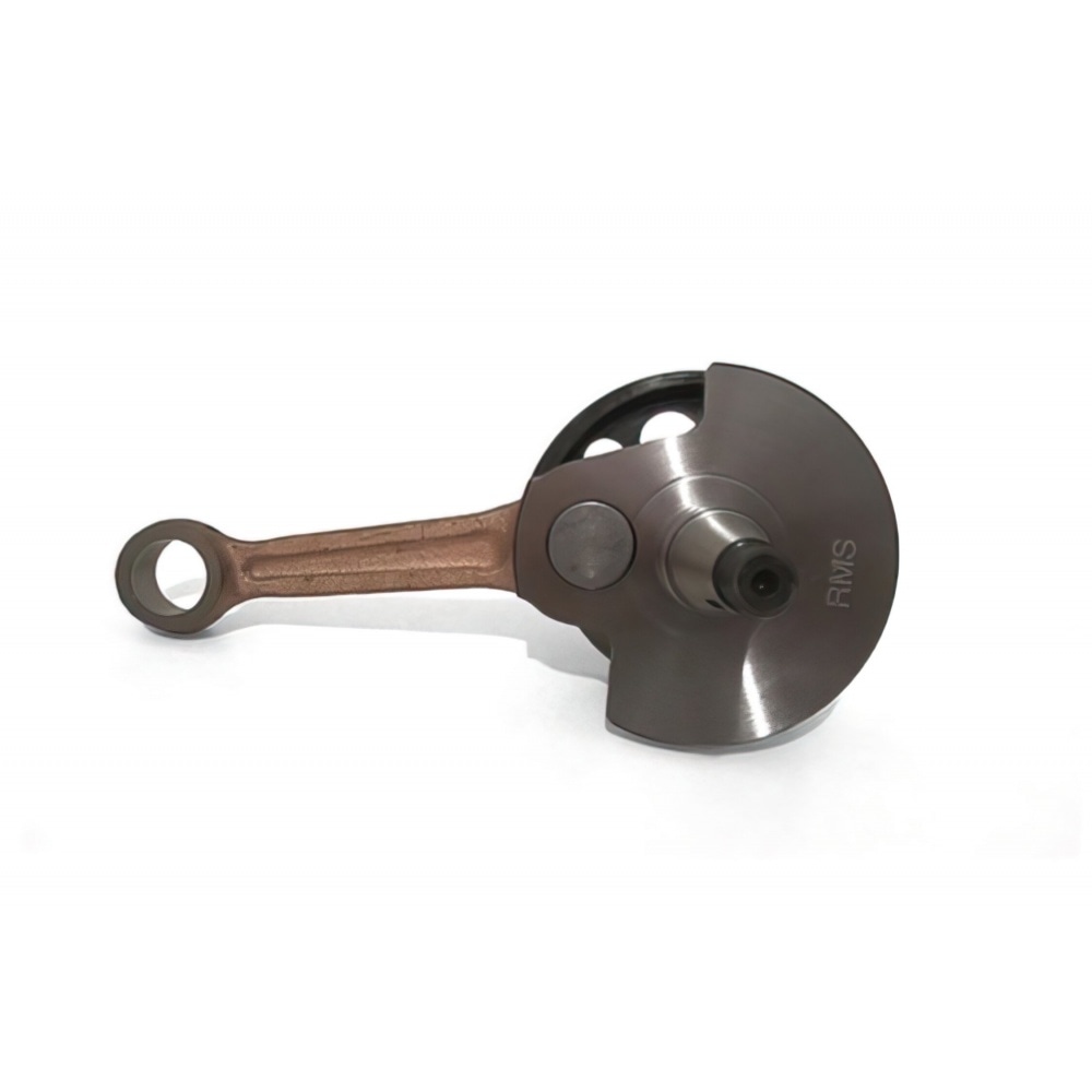 Tas ir RMS Crankshaft for Vespa PE 200cc. The crankshaft comes with a reinforced small end bearing. The connecting rod is reinforced, so that the crankshaft can be used for original / stock as well as slightly tuned sports set-ups with more powerful cylinders.