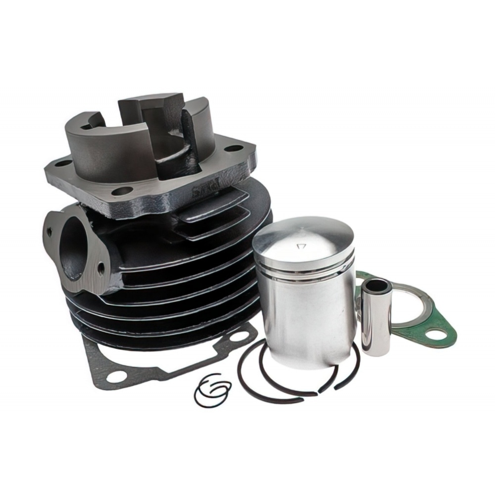 This is a RMS Cylinder Kit 50cc Vespa S / Special / Elestart; The 38.4mm bore will not increase displacement, but as it is a “Sport” cylinder, you will notice a nice increase in torque and wider power band. More power means you have to adjust the rest of your set-up a bit – we definitely recommend a reinforced crankshaft capable of dealing with the increase in power.