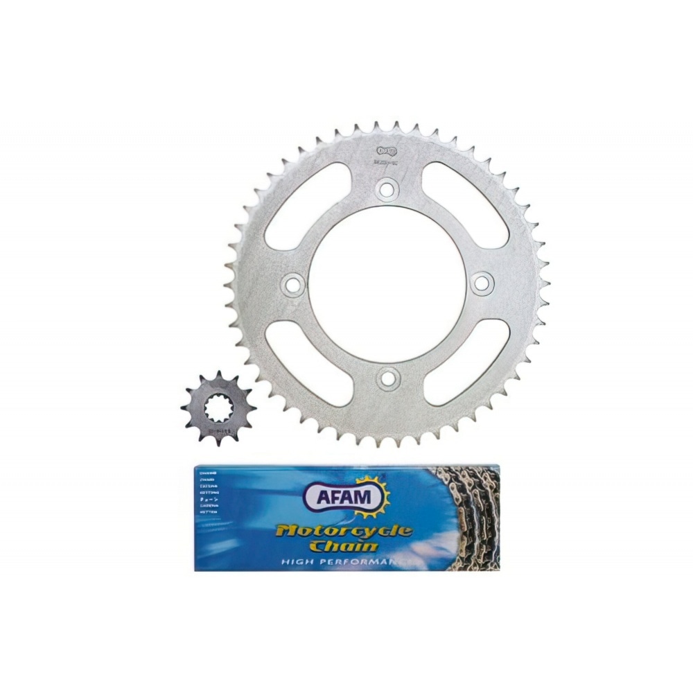If your chain is starting to stretch out and show easy side to side play, the links develop flat wear patterns or you notice rust and the sprockets are worn down which you can easily see as the teeth are either broken, bent, worn down or cupped out at the base, it is high time to change chain and sprockets. This is an excellent value for money Afam Chain Kit 12/50 teeth 428 Beta 50 RR Factory 2005 – 13.