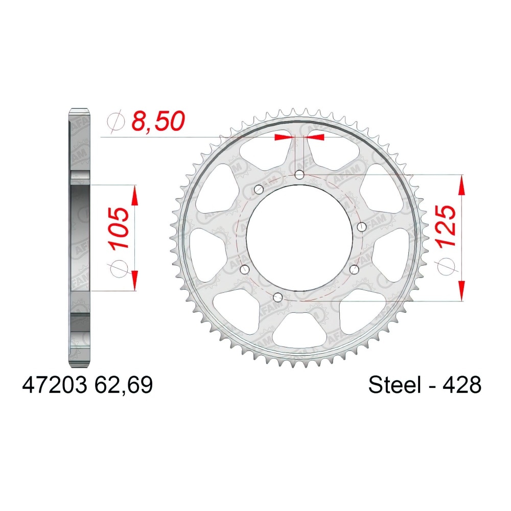• rear sprocket hole d.: 105mm