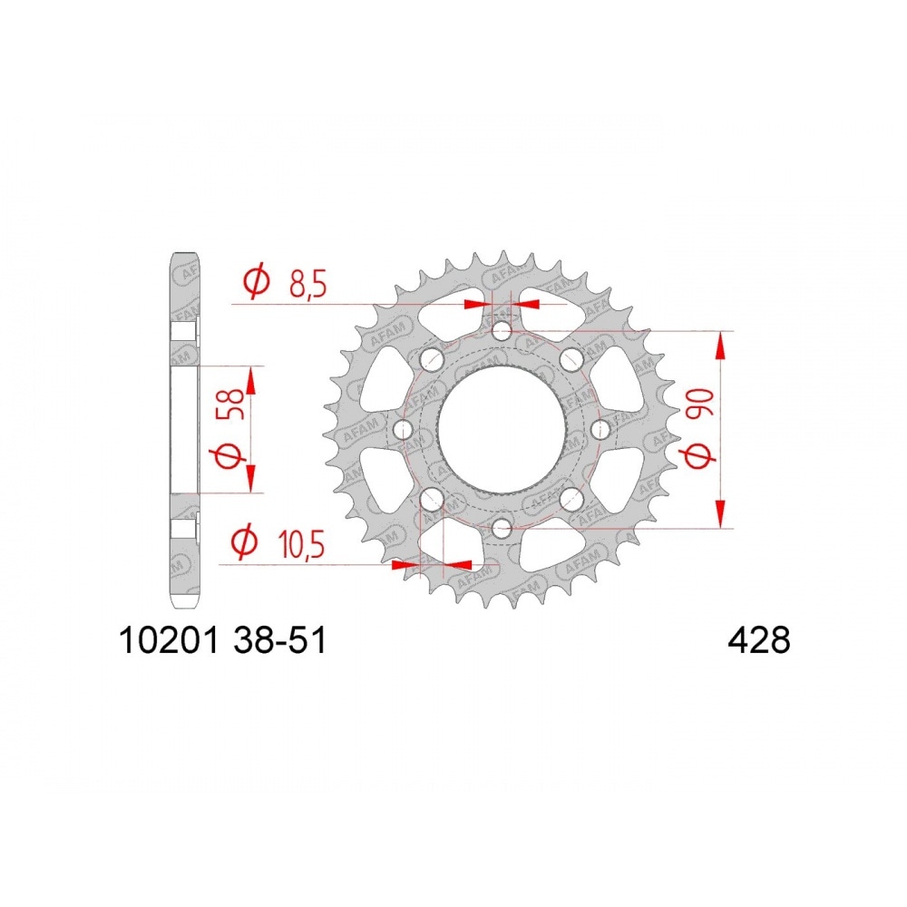- rear sprocket hole d.: 58mm