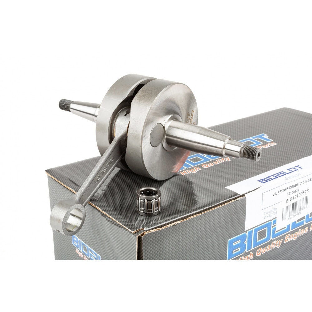 This is the high-end crankshaft matching the world record cylinder RF50WR from the tuning specialists Bidalot from France: Bidalot Crankshaft 39,7mm stroke / 85mm connecting rod RF50WR Derbi Euro2.