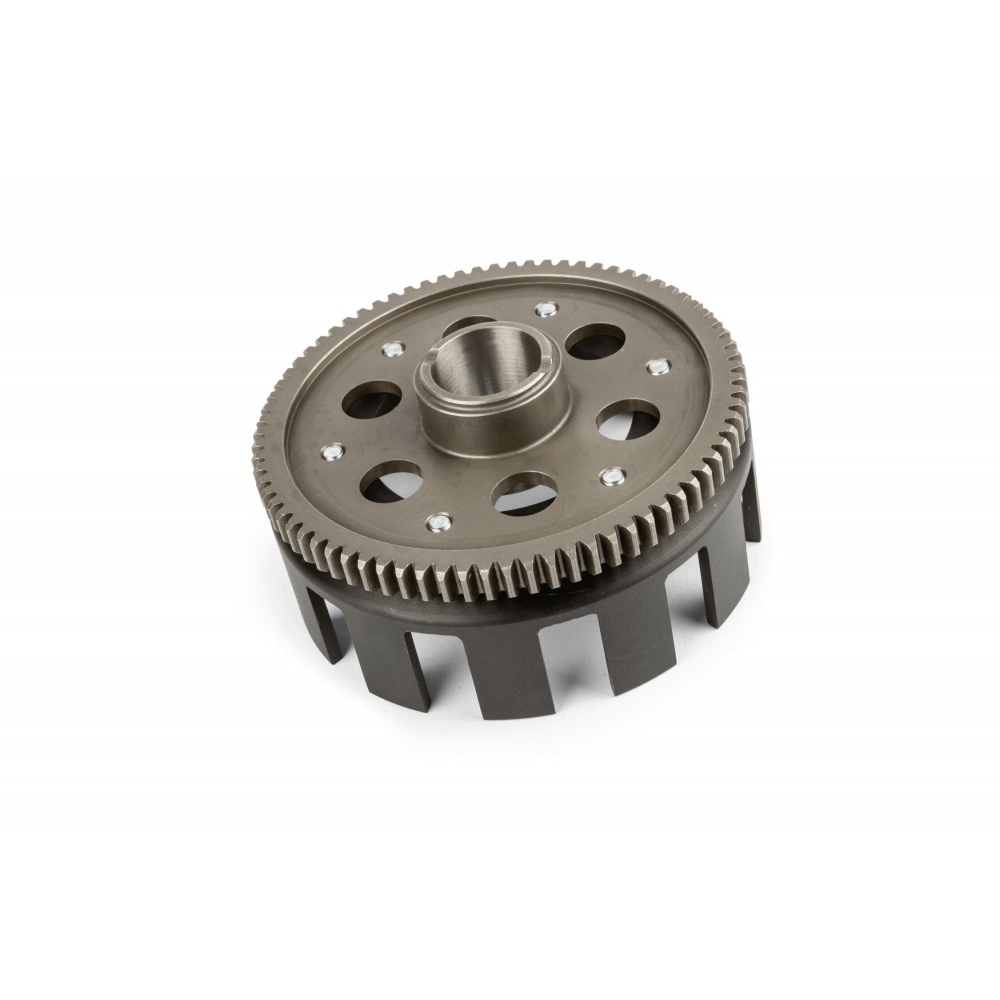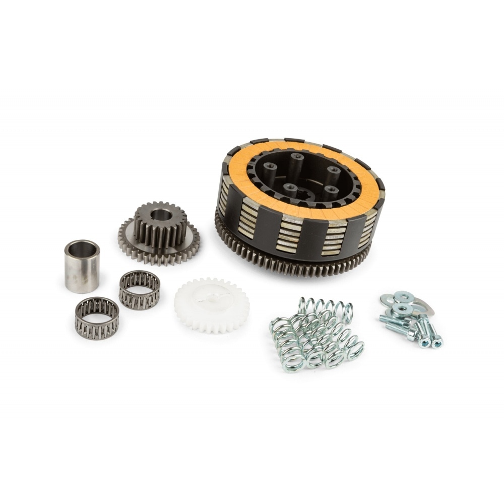 Эта коробка передач в сборе со сцеплением и первичными шестернями производства Bidalot Racing Factory уменьшит пробуксовку сцепления, особенно на двигателях с большим рабочим объемом и большой мощностью. Передаточное число этой трансмиссии отличается от оригинальной - более высокие шестерни уменьшают общее передаточное число, более низкие - увеличивают. Максимальное вращение входного вала будет происходить быстрее, поэтому давление на сцепление уменьшается, что улучшает сцепление и предотвращает пробуксовку. Кроме того, корзина сцепления изготовлена из цельного алюминия, что позволяет установить 6 дисков вместо 4. Пробуксовка сцепления исключается, и вся доступная мощность передается на колесо.