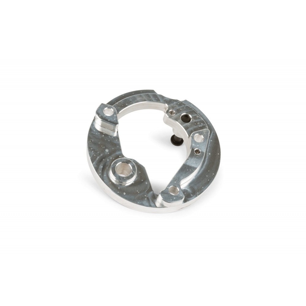 Accessory for the high-end racing crankcases “Passion” by 2Fast:Brake Shoe Holding Plate for 2Fast Passion crankcase. This bracket allows for mounting a brake shoes with the case. This gives you the option to either use a drum brake or a disc brake on your rear wheel.