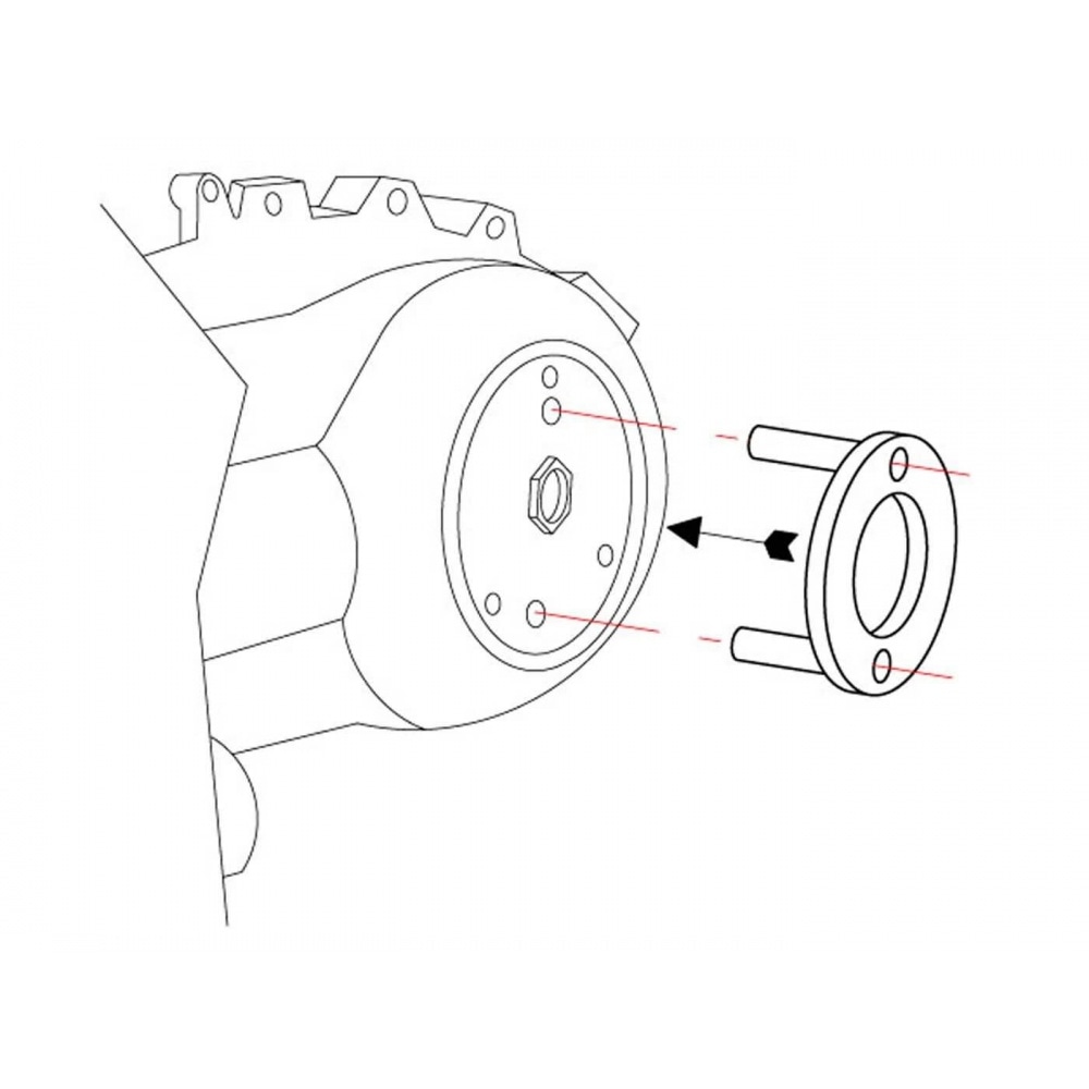 Clutch Holding Tool for Vespa ET4 / LX / LXV / S / Primavera / Sprint / GTS / GTS Super / GTV / GT 60 / GT / GT L 125-300cc. The pins engage the clutch bell, making it easy to lock the bell and open the nut.