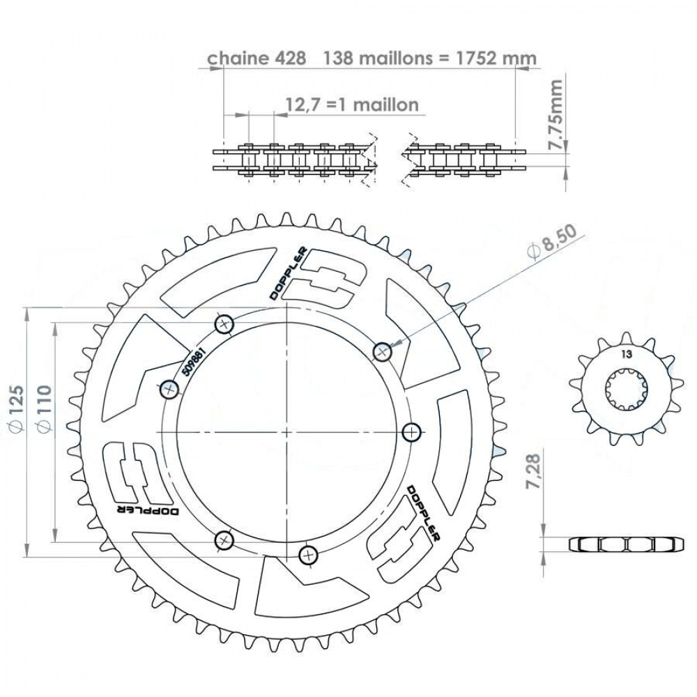 Chain Kit 13x53 steel - 428 Doppler Origin Sherco 50cc