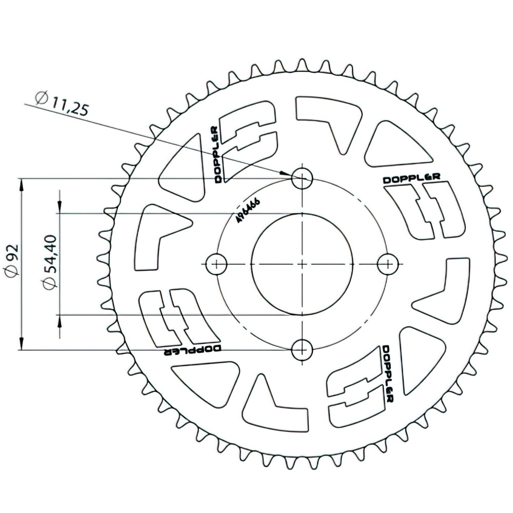 - rear sprocket 4 holes, d. 54mm (inside)