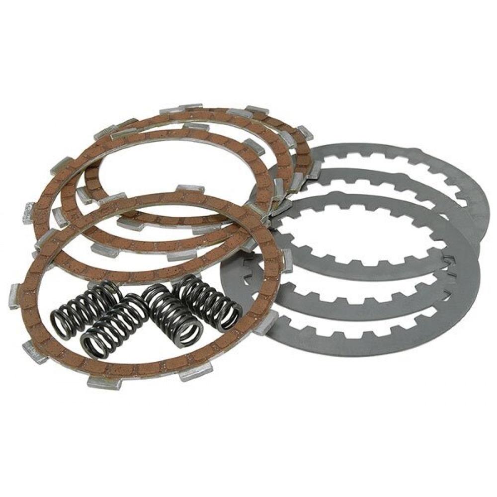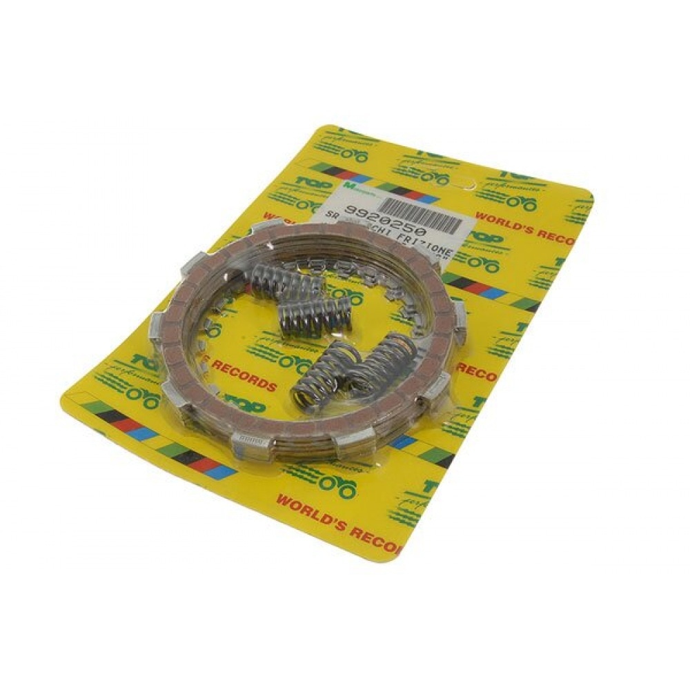Racing clutch discs + friction plates + springs by renowned Italian company Top Performances. The clutch discs are very similar to the original ones, the springs are reinforced and harder, though – improved power transmission without slippage or drag. Ideally suited for (lightly) tuned racing engines.