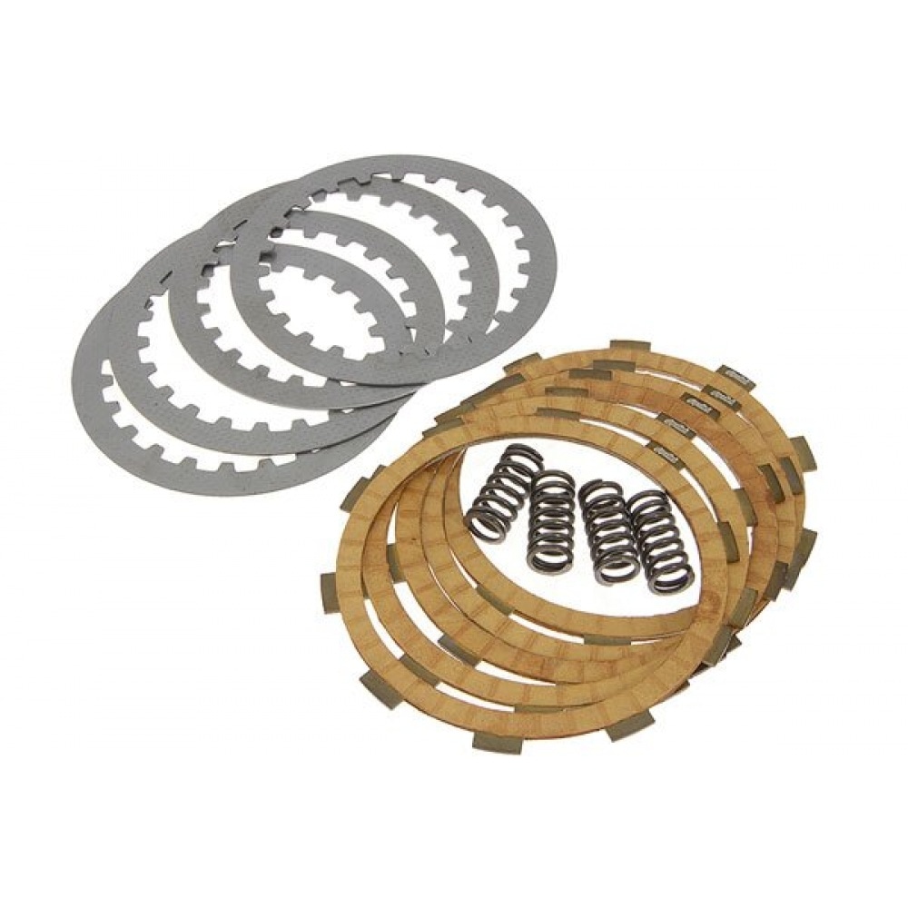 The set includes 5 friction plates + 4 plain discs and springs. Racing clutch discs for tuned engines.