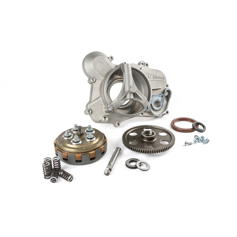 This dry clutch for Derbi can be used on racing setups from 50cc to 100cc. It consists of all parts necessary for assembly and can be mounted without any further adjustments: