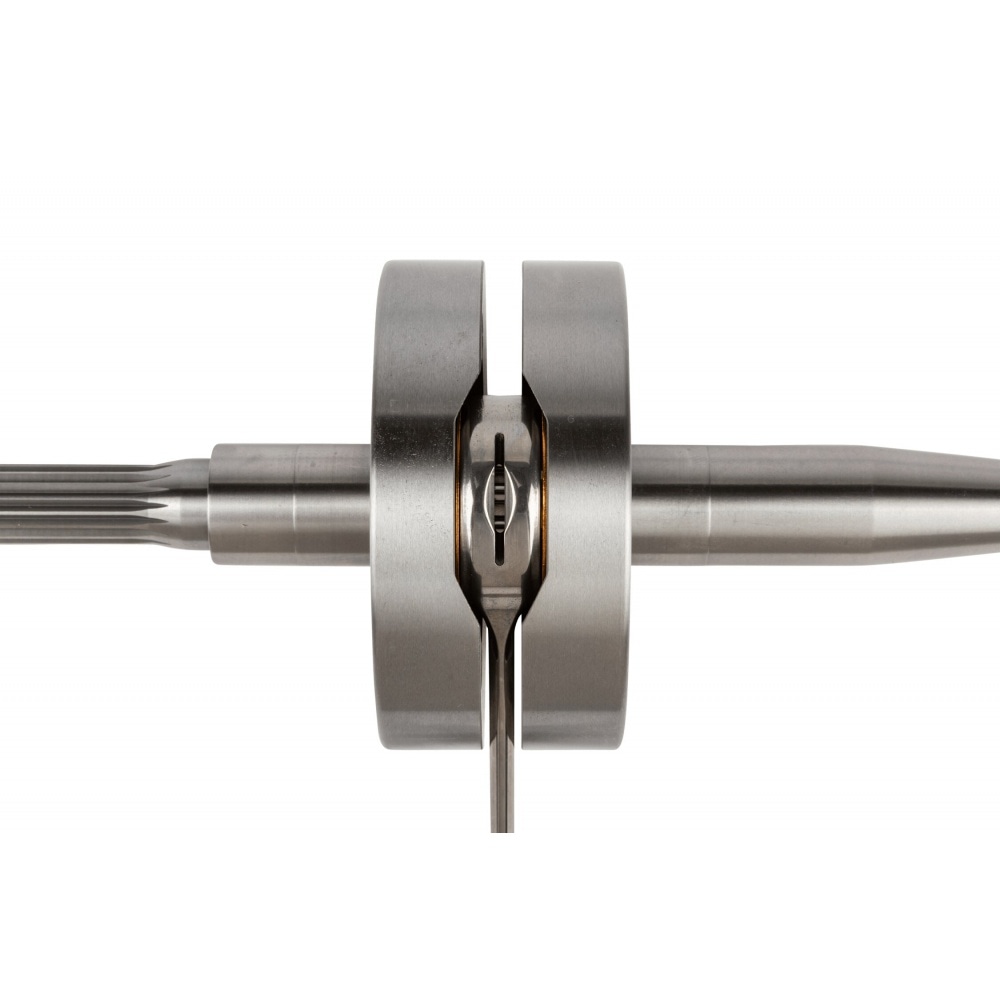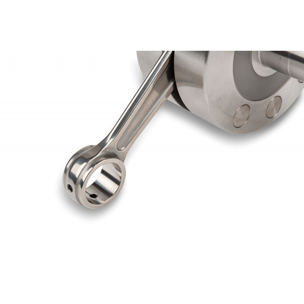 Note: the engine block will need some machining to make room for this ‘oversized’ crankshaft. You have to make space for the larger crank webs, the passage for the connecting rod and prepare the case for a reed valve spacer.