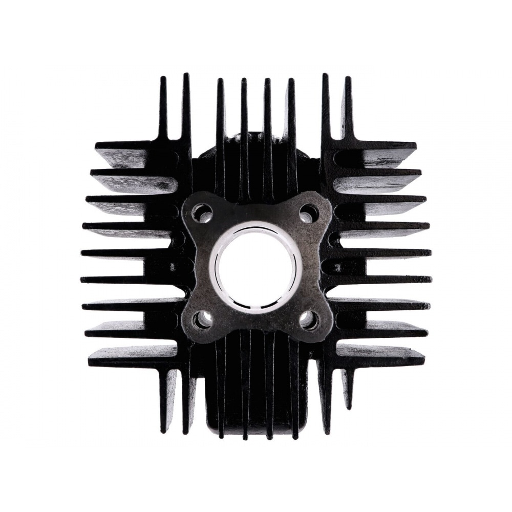 Cast iron cylinder with slanted outlet, including piston and accessories, suitable for Tomos A35, Sprint, Quadro, FunSport, Classic and many other Tomos models. This is a black painted OEM quality cylinder in very good quality without performance increase.