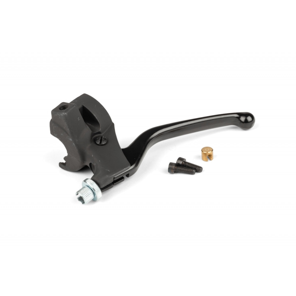 Very affordable Domino Clutch Lever + Mount Derbi DRD / X-Trem, OEM quality part, basically identical to original.The assembly includes clutch lever, holding screw and cable adjuster.
