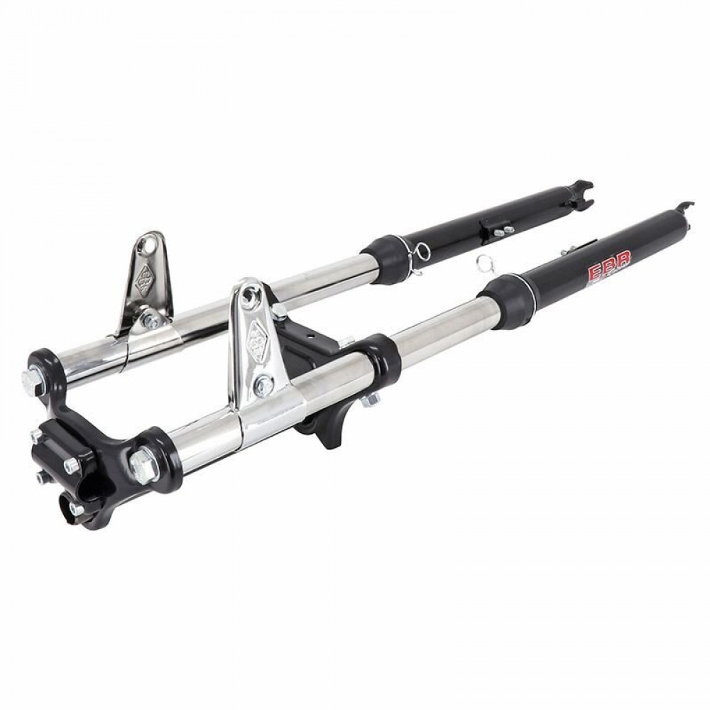 Замена вилки от EBR для Peugeot 103 SP. EBR из Италии специализируется на системах подвески и вилках для двухколесных транспортных средств, поэтому вы можете быть уверены, что это качественная замена оригинальной вилки.