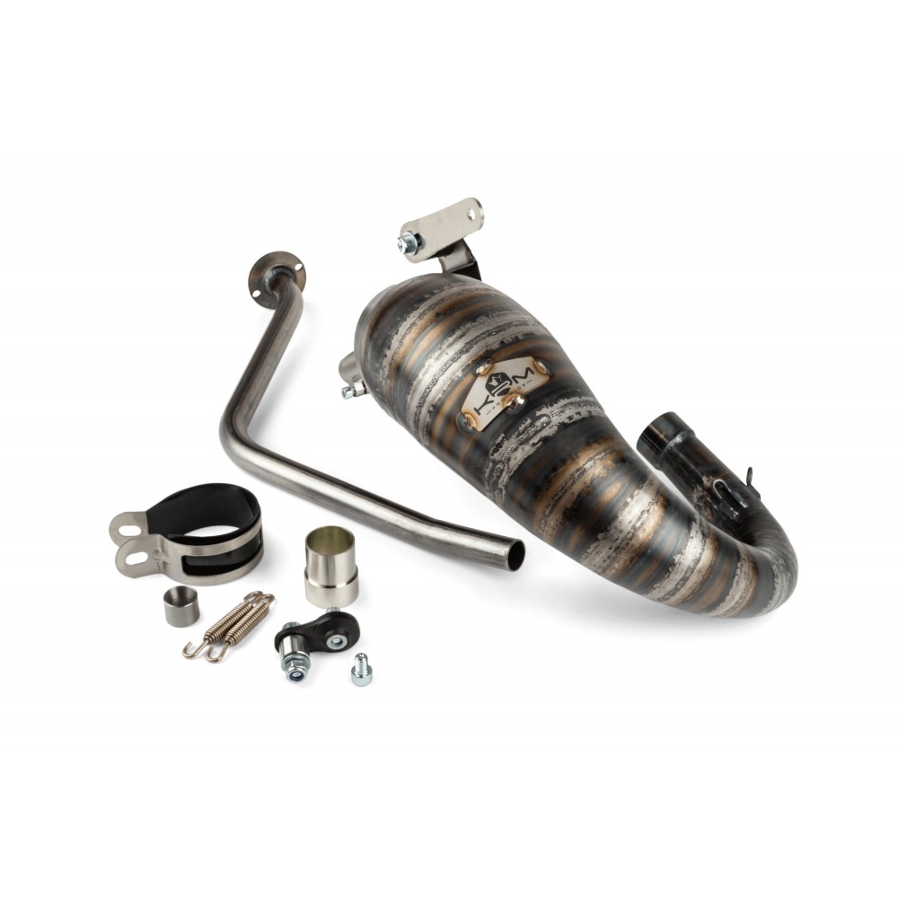 Выхлопные системы для драг-рейсинга и гонок на улице уже давно являются частью модельного ряда KRM, теперь они также выпускают системы для бездорожья. Эта система предназначена для Minarelli AM6: выпускная система KRM Pro Ride 80 - 90cc для Minarelli AM6. Эта выхлопная система была разработана на основе рамы Rieju MRT, но также может быть адаптирована к другим моделям.