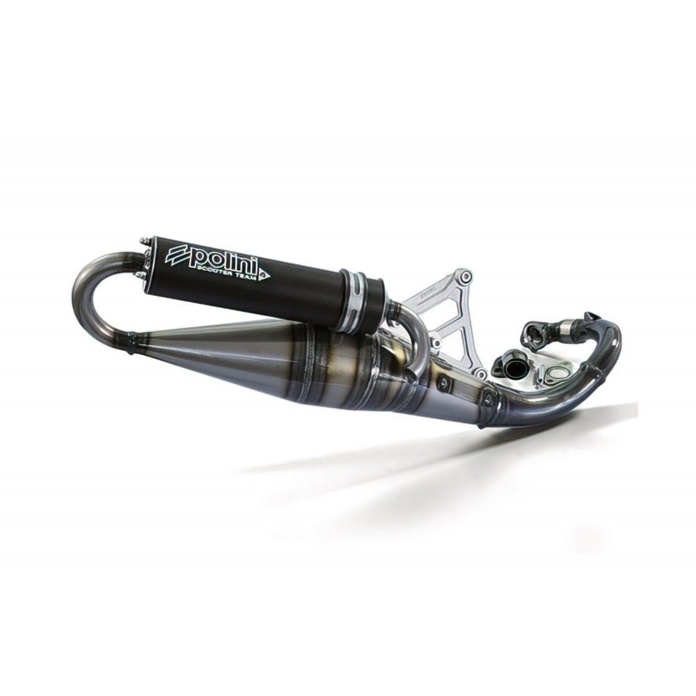 Polini Exhaust TEAM 4 CE Minarelli horizontal (Yamaha Aerox). Polini’s TEAM exhausts are road-legal, but noticeably improve the the output of your engine, especially at mid rpm range.