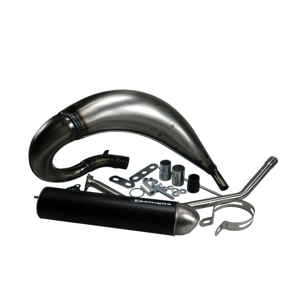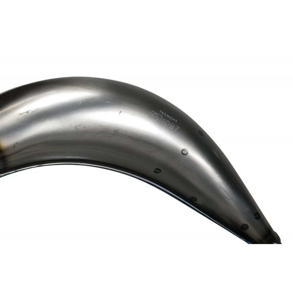 Выхлоп Tecnigas E-NOX STEEL Motorhispania FU01 (Furia), FU01 (XP9/XP6), Rieju, омологированный, недорогой тюнинговый выхлоп из стали, подходит для 50cc - 70cc спортивных цилиндров (легкий тюнинг). Tecnigas использует здесь сталь вместо нержавеющей стали, что делает выхлоп намного дешевле. С помощью простой покраски (высокотемпературной краской) вы можете украсить и защитить выхлопную трубу.