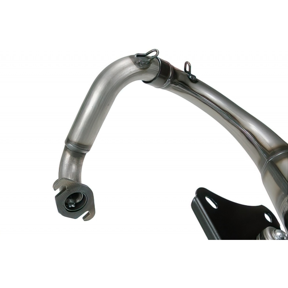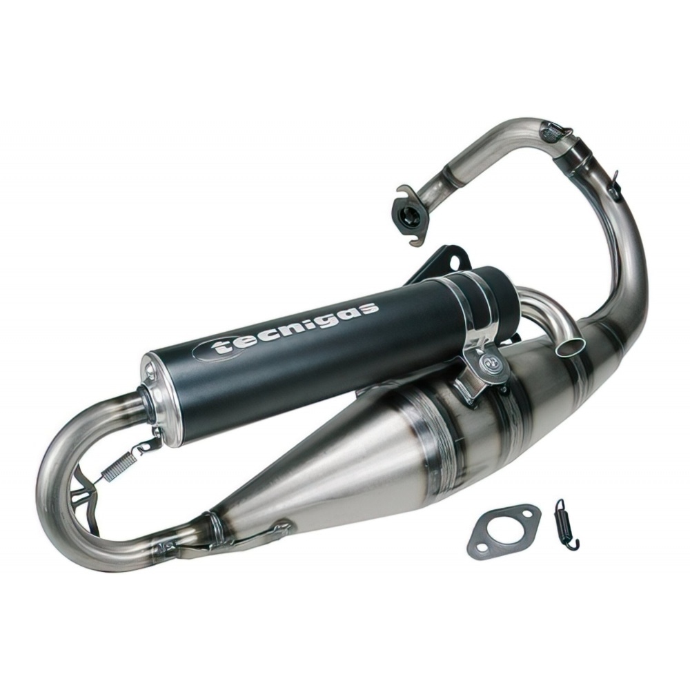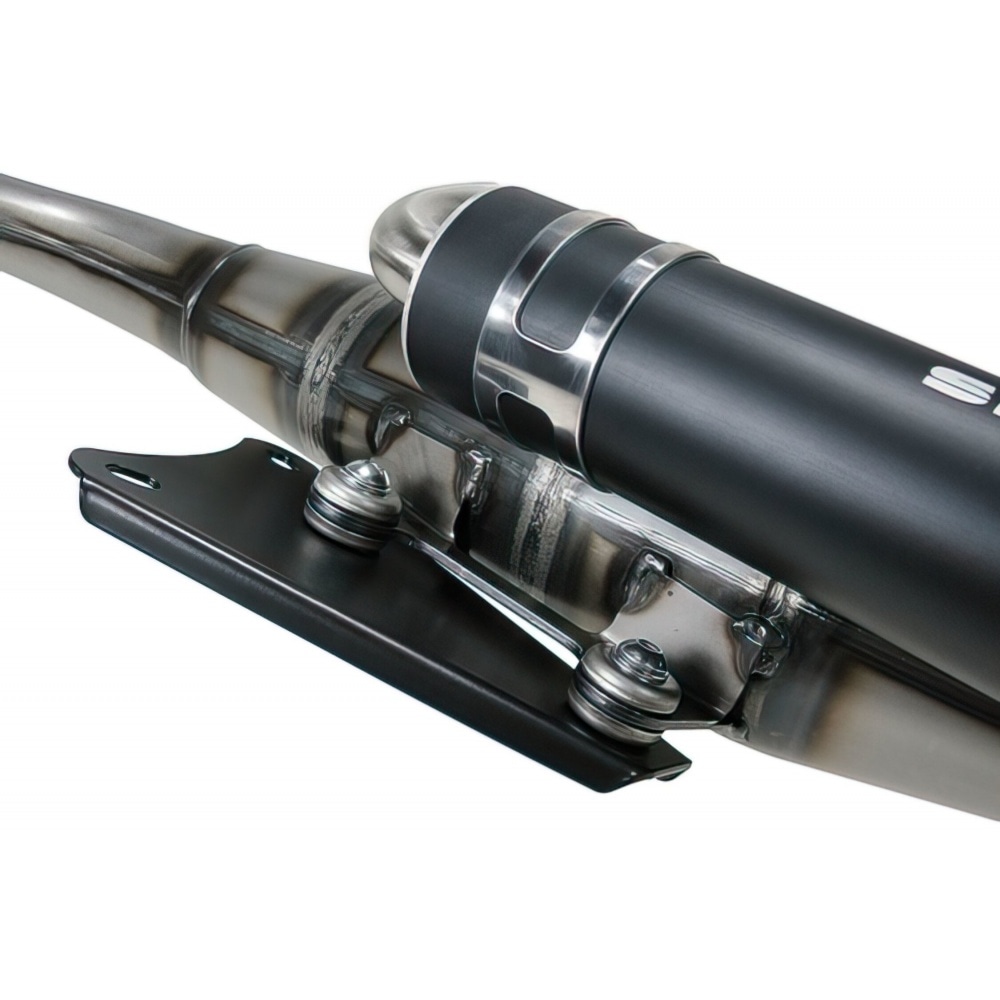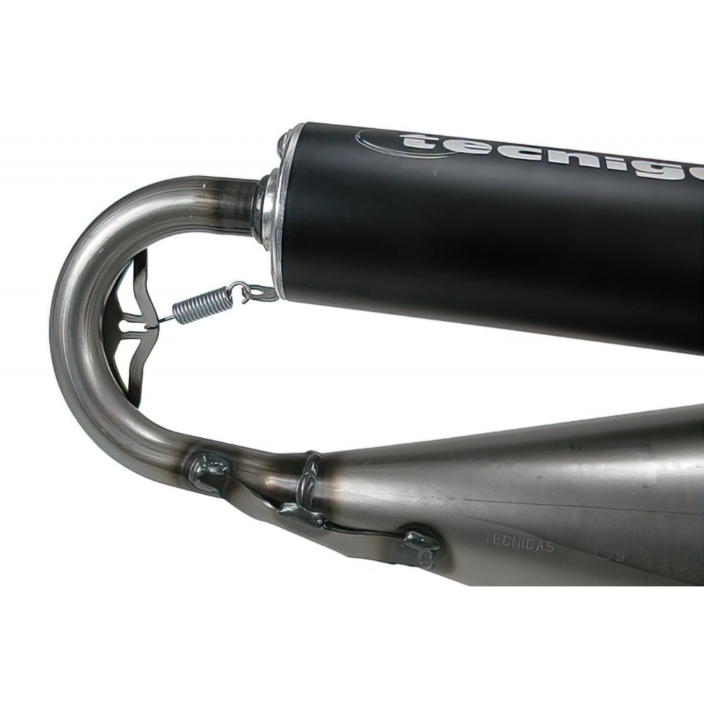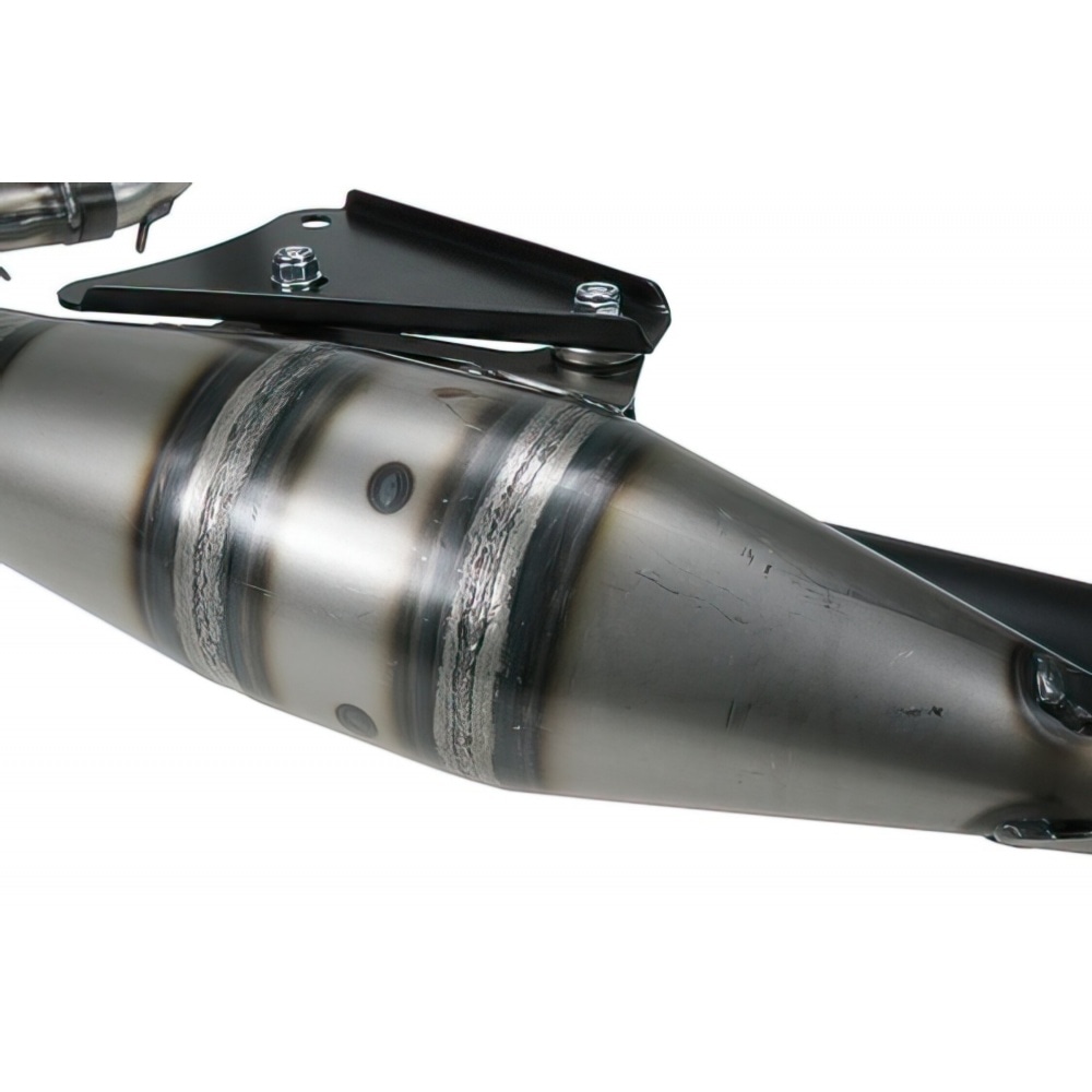 With the Triops, we can offer you a handmade exhaust system in racing look for road use. The exhaust has a slip-on flange and comes with a black anodised aluminium silencer. Furthermore, the silencer for this model is now also a slip-on construction and comes sealed and additionally secured via a spring, like from other well-known manufacturers. The exhaust system is perfect for original and 70cc sport cylinders.